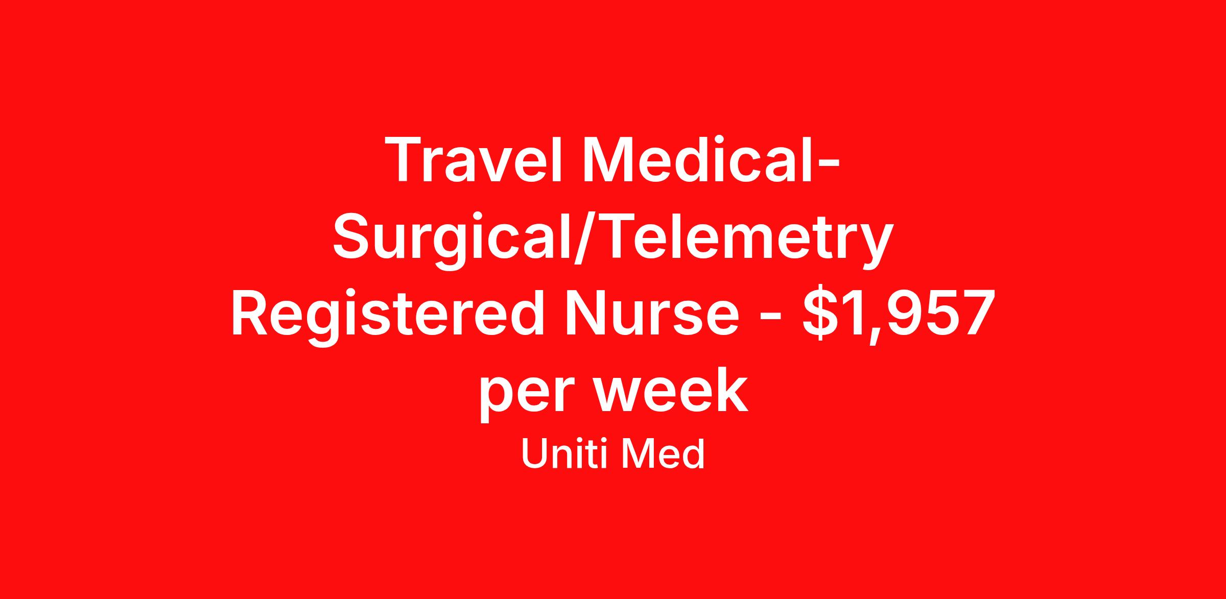 Travel Medical-Surgical/Telemetry Registered Nurse - $1,957 per week