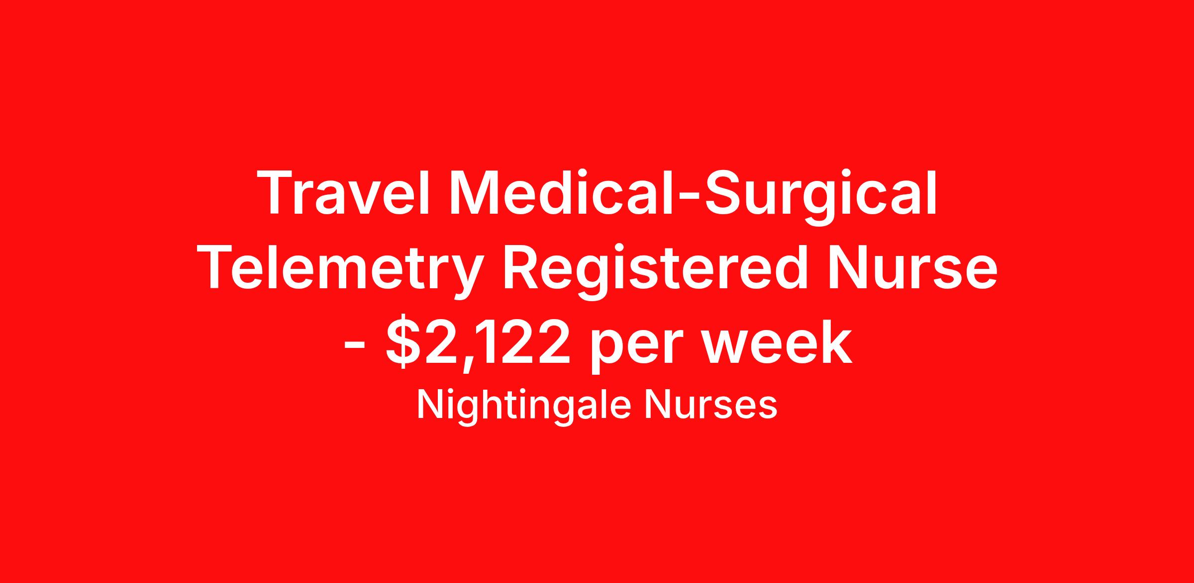 Nightingale Nurses is seeking a travel nurse RN Med Surg / Telemetry for a travel nursing job in Warrensville Heights, Ohio. Job Description & Requirements Specialty: Med Surg / Telemetry Discipline: RN Start Date: 03/21/2026 Duration: 13 weeks 36 hours per week Shift: 12 hours, days Employment Type: Travel About Nightingale Nurses the first name in travel nursing You may not realize it, but as an RN with real world hospital experience, you are legendary. To the lives you’ve helped save, the patients you’ve cared for, and to the hospitals where you’ve done it. And you’re just getting started. Legendary is where Nightingale begins. We’re the first name in travel nursing, representing only the very best RNs. That’s why hospitals prefer us, allowing us to offer exceptional travel nursing assignments all over the US, as well as the highest pay rates and most extensive benefits in the industry. Nightingale facilitates every aspect of your travel nursing assignment, so you can focus on doing what you do best. We want you to grow, explore, and enjoy unrivaled liberty, the freedom to nurse.