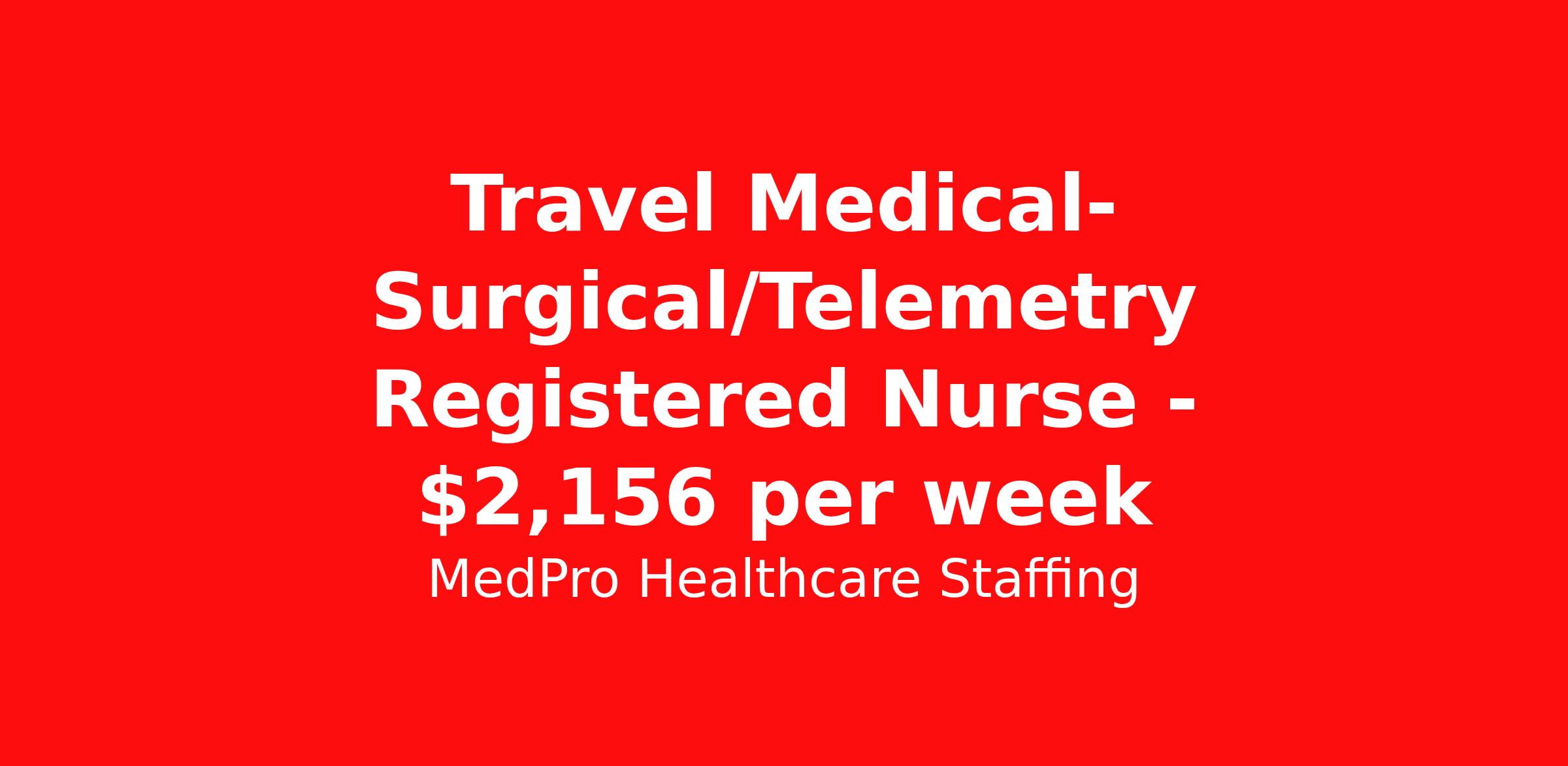 MedPro Healthcare Staffing is seeking a travel nurse RN Med Surg / Telemetry for a travel nursing job in Rochester, New York. Job Description & Requirements Specialty: Med Surg / Telemetry Discipline: RN Start Date: 04/13/2026 Duration: 13 weeks 36 hours per week Shift: 12 hours, nights Employment Type: Travel MedPro Healthcare Staffing , a Joint Commission-certified staffing agency, is seeking a quality Med-Surg registered nurse (RN) for a travel assignment with one of our top healthcare clients. Requirements Active RN License Degree from accredited nursing program BLS Certifications Eighteen months of recent experience in an Acute Care Med/Surg setting Other requirements to be determined by our client facility Benefits Weekly pay and direct deposit Full coverage of all credentialing fees Private housing or housing allowance Group Health insurance for you and your family Company-paid life and disability insurance Travel reimbursement 401(k) matching Unlimited Referral Bonuses up to $1,000 Duties Responsibilities Med-Surg Nurses (RN) provide care for primarily adult patients before and after surgical procedures; they also attend to those who are being treated with pharmaceuticals to manage illness. Due to the broad range of medical conditions Med/Surg Nurses will encounter, they must be well-versed in a large variety of health conditions. Complete assignments made by physicians. Provide routine treatment and post-surgical care. Assess changes in patient's health status and perform various treatments. Administer medication. Meticulous documentation as to medication and treatment administration to ensure continuity of care between nursing staff, physicians and other treatment team members. About Agency MedPro Healthcare Staffing is a Joint Commission certified provider of contract staffing services. Since 1983, we have placed nursing and allied travelers in top healthcare facilities nationwide. Join us today for your very own MedPro Experience®. If qualified and interested, please call for immediate consideration. MedPro Staffing is an Equal Opportunity Employer. All applicants will be considered for employment without attention to race, color, religion, national origin, age, sex, disability, marital status or veteran status. Key Words: Registered Nurse, RN, Medical-Surgical, Travel Nurse, Contract Nurse, Agency Nurse, Agency RN, RN-MS, RN- Medical Surgical, Travel RN, Contract, Nursing, RN Med-Surg, Travel Nursing *Weekly payment estimates are intended for informational purposes only and include a gross estimate of hourly wages and reimbursements for meal, incidental, and housing expenses. Your recruiter will confirm your eligibility and provide additional details. MedPro Job ID a0Fcx00000GluOvEAJ. Pay package is based on 12 hour shifts and 36 hours per week (subject to confirmation) with tax-free stipend amount to be determined. Posted job title: Med-Surg/Telemetry Registered Nurse Nursing: Med Surg/Tele. About MedPro Healthcare Staffing At MedPro Healthcare Staffing , we believe no one cares more for caregivers than we do. Our mission is simple: you focus on your patients, and we’ll take care of the rest. As a Joint Commission-certified leader in temporary and contract healthcare staffing since 1983, MedPro has proudly connected nursing and allied travelers with top healthcare facilities across the nation. With thousands of job opportunities available nationwide, we make it easy to find assignments that align with your goals and lifestyle. Our on-staff clinical support team—alongside a compassionate group of experienced recruiters—provides hands-on guidance every step of the way. From Day 1 medical benefits and a 401(k) plan to personalized career support, we’re committed to ensuring every professional we serve feels valued, cared for, and empowered to succeed. Guided by a CEO who is a Registered Nurse, MedPro is built on a foundation of clinical insight and genuine compassion for the caregiving community. Through The MedPro Experience® , we deliver travel assignments that are rewarding, memorable, and designed to help you DREAM big, EXPLORE often, and ACHIEVE greatness. Benefits Day 1 medical, dental, and vision benefits for you and your family Weekly pay and direct deposit Unlimited Referral Bonuses starting at $500 On Staff Clinical Support Team Access to nationwide travel assignments MPX Mobile app -24/7 real-time access to jobs, credentials, assignment details, and more Full coverage of all credentialing fees Private housing or housing allowance Tax Free Per Diems, Housing Stipends and Travel Reimbursements Company-paid life and disability insurance Travel reimbursement 401(k) matching Benefits Weekly pay Referral bonus Employee assistance programs
