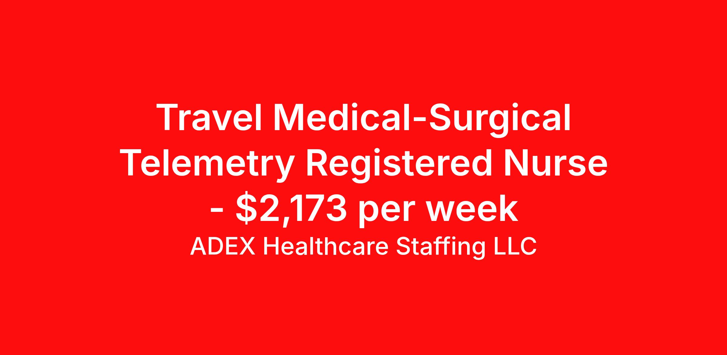 ADEX Healthcare Staffing LLC is seeking a travel nurse RN Telemetry for a travel nursing job in Lafayette, Louisiana. Job Description & Requirements Specialty: Telemetry Discipline: RN Start Date: 04/06/2026 Duration: 8 weeks 36 hours per week Shift: 12 hours, nights Employment Type: Travel RN Position Job Notes: Travel or Local Registered Nurse needed for ASAP start. A minimum of 2 years of recent hospital bedside experience is required. Candidates must be able to start within 5 weeks. Opportunity for extension upon successful completion of the initial assignment. $750 referral bonus available. Opportunity: RN - Med Surg Tele Job Details: • 12-hour orientation required • Patient ratio of 6:1 for days, nights, and weekends • Weekend coverage required with every other holiday worked • Float to all other inpatient units as needed (agency staff pulled first) • 2 years of experience in specialty required • Must live over 65 miles from facility (no local travelers accepted) • Care for adult and geriatric patients on 24-bed telemetry unit with daily census of 24 • Manage patients with chest pain, CAD, PVD, arrhythmias, diabetes, COPD exacerbation, pneumonia, hypertension, MI, renal failure, PE, CHF, GI bleed, and syncope • Handle med-surg overflow patients including sepsis and CVA cases • Perform pre/post cath lab care, PPM/AICD procedures, ablations, and vascular surgeries • Titrate cardiac drips including Cardizem, Amiodarone, Dobutamine, Nitroglycerin, Dopamine, and Heparin • Perform bedside sheath removal procedures • Required certifications: BLS, ACLS, CPI, NIHSS • Must have telemetry monitoring experience and dysrhythmia interpretation/management skills • Experience required with chest tubes, PCAs, epidurals, wound vacs, blood product administration, central/peripheral/PICC line care, IV starts, port accessing, and isolation precautions • Compact or Louisiana license required upon submittal • Must be available for Emergency Team assignment during emergency events • Unable to guarantee specific scheduling requests such as block scheduling Facility: This medical center features a comprehensive cardiovascular telemetry unit with 24 beds serving adult and geriatric patients. The facility provides advanced cardiac care including catheter lab services, cardiac surgery support, and specialized procedures such as pacemaker/AICD implantations and cardiac ablations. The unit offers interdisciplinary support services including physical therapy, respiratory services, pharmacy, radiology, and social services to ensure comprehensive patient care. Location: Lafayette, LA Lafayette offers a vibrant cultural experience in the heart of Louisiana's Acadiana region, known for its rich Cajun and Creole heritage, excellent cuisine, and lively music scene. The area provides a unique blend of Southern charm and cultural diversity, making it an exciting place for healthcare professionals to experience authentic Louisiana culture while advancing their careers. Adex Job ID 3217399. Pay package is based on 12 hour shifts and 36 hours per week (subject to confirmation) with tax-free stipend amount to be determined. About ADEX Healthcare Staffing LLC ADEX has been placing healthcare professionals across the US since 2004. Originally founded in Atlanta, GA, the company's headquarters are now located in Tampa, FL. JCAHO certified since 2009. Benefits Referral bonus