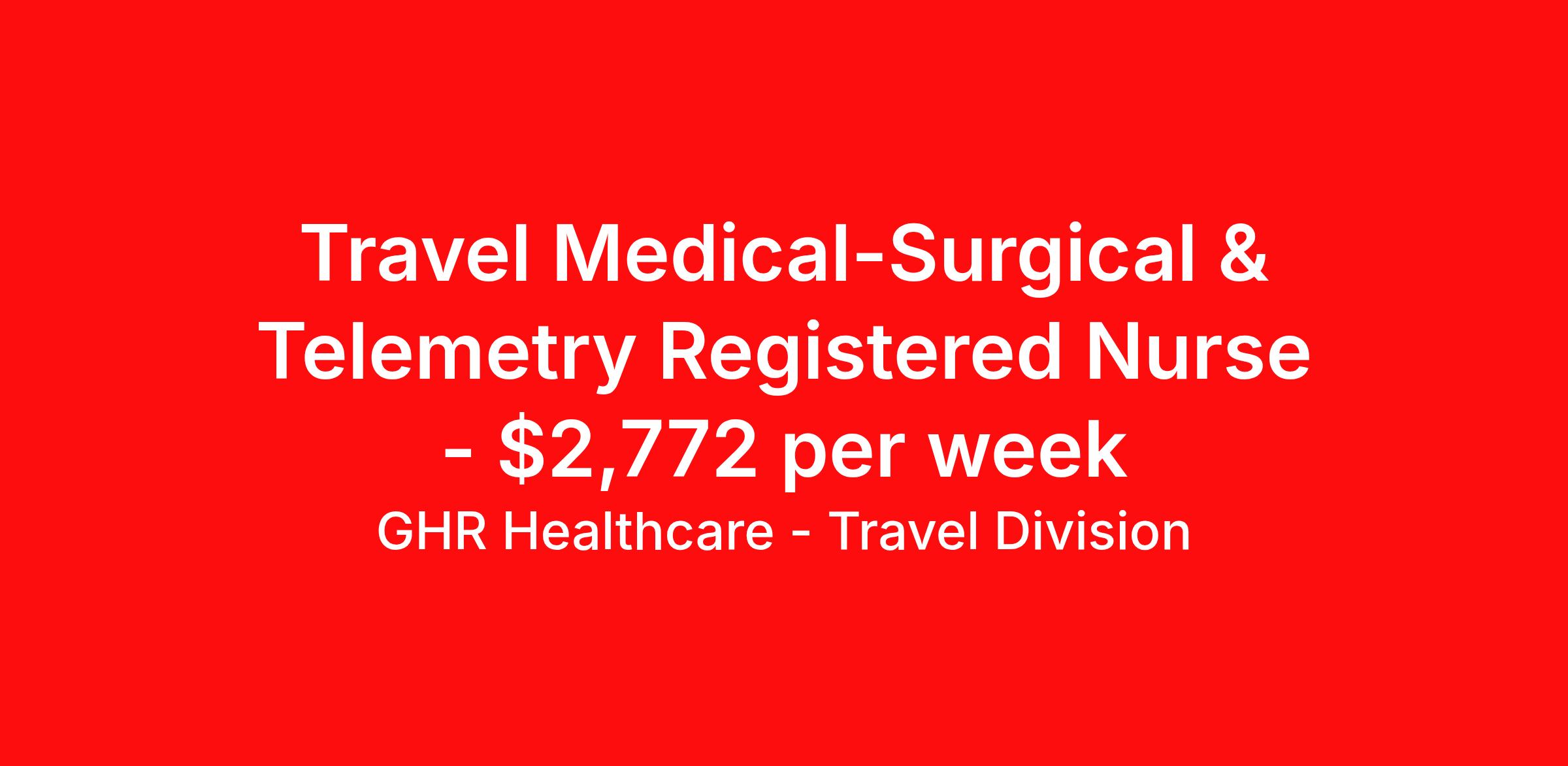 GHR Healthcare - Travel Division is seeking a travel nurse RN Med Surg for a travel nursing job in Newburyport, Massachusetts. Job Description & Requirements Specialty: Med Surg Discipline: RN Start Date: ASAP Duration: 4 weeks 36 hours per week Shift: 12 hours Employment Type: Travel GHR Healthcare - Travel Division Job ID 74126966. Pay package is based on 12 hour shifts and 36 hours per week (subject to confirmation) with tax-free stipend amount to be determined. About GHR Healthcare - Travel Division For over 30 years, GHR Healthcare has been the bridge between healthcare professionals and the facilities that need them nationwide. We're committed to uncovering your ideal fit, supported by GHR's dedication to competitive compensation, transparent communication, and a devoted team that genuinely cares about your career journey. You can trust us to stand by your side as your advocate, confidante, and partner in advancing your career. At GHR, care and consideration are at the heart of everything we do. Visit ghrhealthcare.com to learn more.