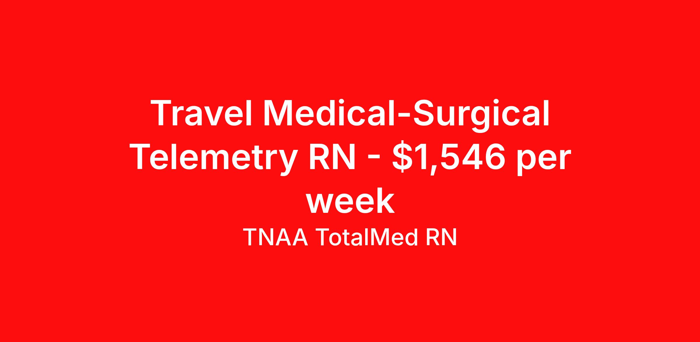 TNAA TotalMed RN is seeking a travel nurse RN Telemetry for a travel nursing job in Orangeburg, South Carolina. Job Description & Requirements Specialty: Telemetry Discipline: RN Duration: 13 weeks 36 hours per week Shift: 12 hours, nights Employment Type: Travel We're looking for Telemetry RNs for an immediate travel nurse opening in Orangeburg, SC. The right RN should have 1-2 years' recent acute care experience. Read below for more requirements. As a TELE Travel Nurse, you will provide care by connecting patients to machines that measure heart rate, blood pressure, breathing rate, as well as blood-oxygen levels and electrocardiogram information. These machines then send data to computer screens for RNs to monitor. Telemetry RNs read and interpret the data to better determine patient care. As a TELE Travel Nurse, you should be prepared to perform the following tasks: Provide basic bedside care. Monitor and adjust specialized equipment used on patients, and interpret and record electronic displays. Identify irregular telemetry readings and notify appropriate medical team members. Initiate corrective action whenever information from monitoring equipment shows adverse symptomatology. TELE Travel Nurses should be able to stand and walk for long periods of time, as well as bend, lean and stoop without difficulty. RNs should be able to easily lift 20 pounds. Moving or lifting of patients may require lifting of up to 50 pounds at times. RNs must have specific vision abilities including close vision, distance vision, color vision, peripheral vision, depth perception and ability to adjust focus. Requirements*: BLS, ACLS, NIH, 2 Years * Additional certifications may be required before beginning an assignment. TotalMed Travel Job ID 1374679. Pay package is based on 12 hour shifts and 36 hours per week (subject to confirmation) with tax-free stipend amount to be determined. Posted job title: Telemetry - TELE RN - Travel Nurse About TNAA TotalMed RN TotalMed is a Top Ten, travel nursing and healthcare staffing agency with the mission of igniting purpose in healthcare. The organization staffs nurses, therapists, pharmacists, and other clinicians of all specialties in all 50 states. They offer local and travel jobs and match caregivers with the right organization to assist both facilities and patients. As an organization, they focus on putting highly-skilled staff into facilities to ensure adequate staffing for a better patient experience. TotalMed specializes in recruiting and placing healthcare professionals in travel, PRN, and permanent positions across the country in Nursing and Allied Health. Throughout 2020, the organization filled roles at even the most short-staffed facilities during the most challenging time in healthcare. By matching the right travel healthcare professional with the right organization, TotalMed continues to offer a lifeline to facilities and their patients. Benefits Weekly pay Guaranteed Hours Continuing Education 401k retirement plan Sick pay Wellness and fitness programs Referral bonus Employee assistance programs Medical benefits Dental benefits Vision benefits Benefits start day 1
