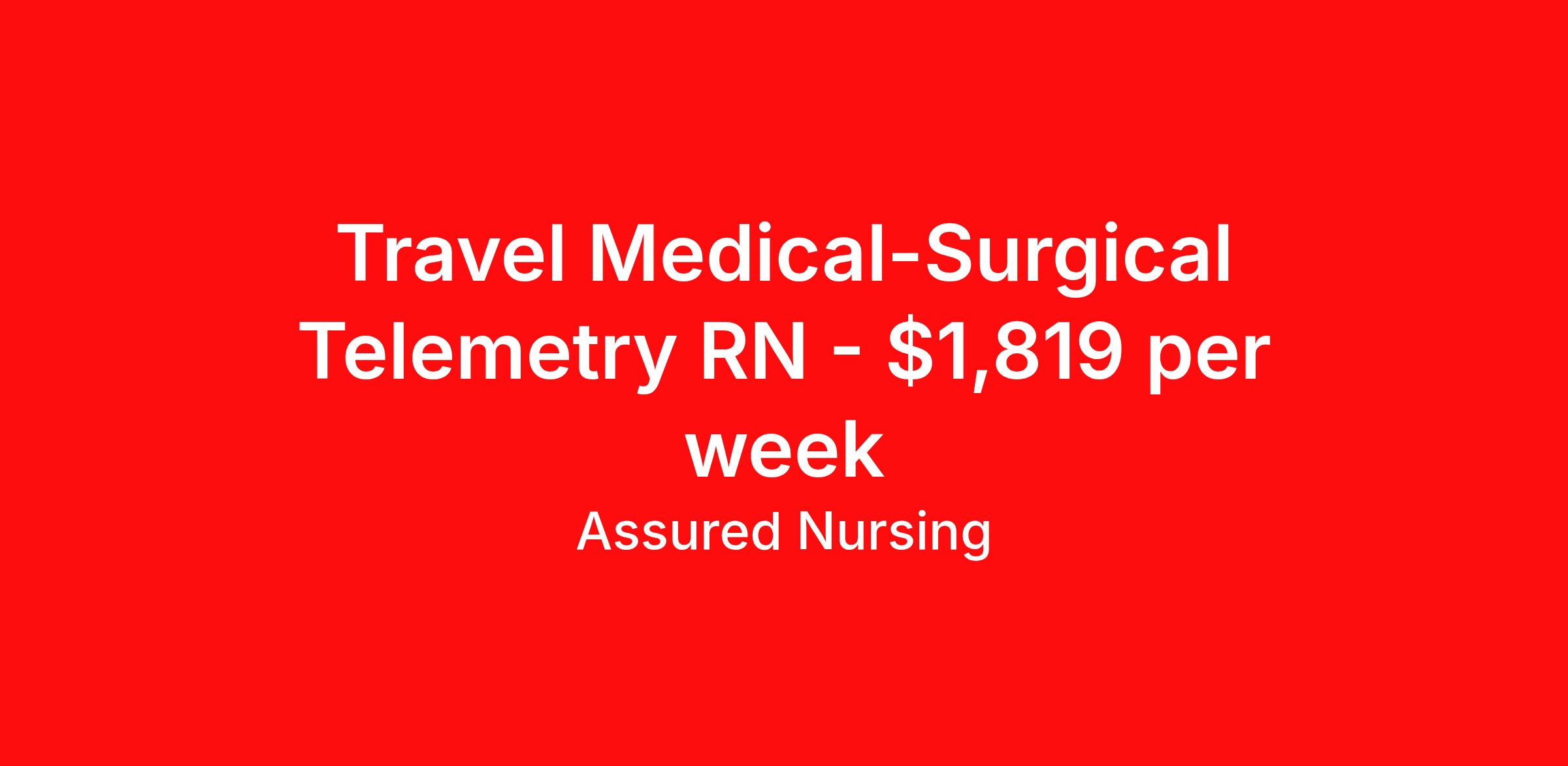 Assured Nursing is seeking a travel nurse RN Med Surg / Telemetry for a travel nursing job in Fayetteville, North Carolina. Job Description & Requirements Specialty: Med Surg / Telemetry Discipline: RN Start Date: 04/20/2026 Duration: 13 weeks 36 hours per week Shift: 12 hours, nights Employment Type: Travel Assured Nursing is currently seeking a RN for a contract position in Fayetteville North Carolina . This is a 7p-7:30a, 19:00:00-07:30:00, 12.00-3 position in the 106136 - 3VP - Medical/Telemetry - Registered Nurse . The ideal candidate will possess a current state license as a RN and have at least 2 years of recent experience as a MS/TELE RN . Assured Nursing Job ID 36177589. Pay package is based on 12 hour shifts and 36.0 hours per week (subject to confirmation) with tax-free stipend amount to be determined. Posted job title: RN:MS/TELE,19:00:00-07:30:00 Benefits Weekly pay Holiday Pay 401k retirement plan Referral bonus Medical benefits Dental benefits Vision benefits