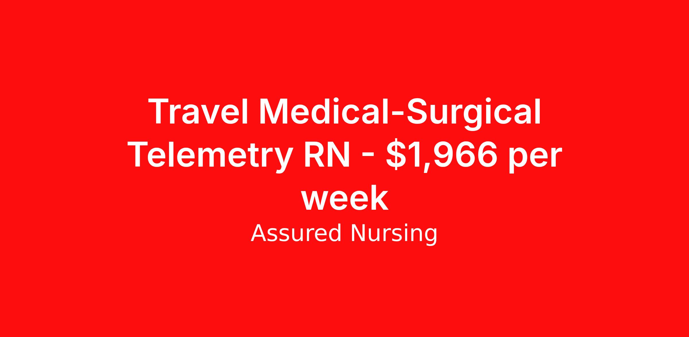 Assured Nursing is seeking a travel nurse RN Med Surg / Telemetry for a travel nursing job in Memphis, Tennessee. Job Description & Requirements Specialty: Med Surg / Telemetry Discipline: RN Start Date: 04/20/2026 Duration: 13 weeks 36 hours per week Shift: 12 hours, days Employment Type: Travel Assured Nursing is currently seeking a RN for a contract position in Memphis Tennessee . This is a 7a-7:30p, 07:00:00-19:30:00, 12.00-3 position in the 6 NORTH, 16050 . The ideal candidate will possess a current state license as a RN and have at least 2 years of recent experience as a MS/TELE RN . Assured Nursing Job ID 36012753. Pay package is based on 12 hour shifts and 36.0 hours per week (subject to confirmation) with tax-free stipend amount to be determined. Posted job title: RN:MS/TELE,07:00:00-19:30:00 Benefits Weekly pay Holiday Pay 401k retirement plan Referral bonus Medical benefits Dental benefits Vision benefits
