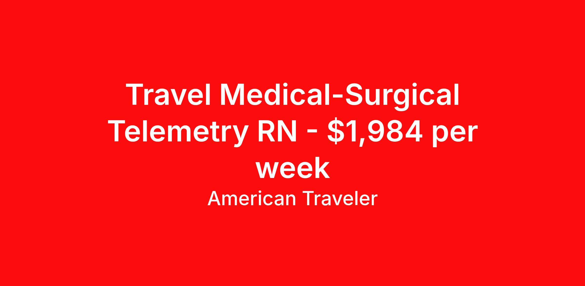 American Traveler is seeking a travel nurse RN Med Surg / Telemetry for a travel nursing job in Lafayette, Louisiana. Job Description & Requirements Specialty: Med Surg / Telemetry Discipline: RN Start Date: 04/06/2026 Duration: 8 weeks 36 hours per week Shift: 12 hours, nights Employment Type: Travel Assignment Overview Shift: Nights, 3x12hrs Hours: 36 hrs/wk Start Date: Apr 6, 2026 Length: 8 weeks Openings: 1 Description American Traveler is seeking an experienced RN for a Med/Surg Telemetry position requiring at least 2 years of acute care experience and the ability to interpret and manage dysrhythmias. Details Med/Surg Telemetry unit in a hospital setting Patient population includes chest pain, CAD, DM, PVD, COPD exacerbation, COVID, TIA, stroke, hypertension, AFib, AFlutter, bradycardia, tachycardia, GI bleed, wound infections, and cellulitis Procedures include pre/post angiogram and angioplasty (no sheath pulls), PPM/AICD, LINQ recorder, general surgical procedures (EGD, colonoscopy, cholecystectomy, appendectomy), wound debridement, chest tube management, central line catheter insertions, thoracentesis, and paracentesis Rhythm management using cardiac drips (not titrated for blood pressure) and post-cath care are part of unit responsibilities Specialized equipment includes telemetry monitoring, chest tubes, and wound vacs Night shift: 3x12-hour shifts, 6:45 PM – 7:15 AM 8-week contract Requirements Active LA or Compact RN license currently in hand Current BLS certification (AHA required) ACLS and NIH Stroke Scale (NIHSS) certifications preferred (AHA required) Minimum 2 years of acute care nursing experience Telemetry experience required Demonstrated ability to interpret and manage cardiac dysrhythmias Additional Information First-time travelers are welcome to apply Candidates must reside 65 miles from the facility to be eligible for this position All RTO requests must be disclosed and discussed during the interview process Upon accepting an assignment, the unit manager may assign travelers to an Emergency Team, which may require remaining at the facility during or after an emergency event or serving on a relief team American Traveler Job ID P-682800. Pay package is based on 12 hour shifts and 36 hours per week (subject to confirmation) with tax-free stipend amount to be determined. Posted job title: Travel RN - Med/Surg Tele About American Traveler With over 25 years of experience, American Traveler has established a reputation for outstanding customer service. Our team ensures a smooth, worry-free experience for those starting on or expanding their travel nursing and allied careers. With thousands of travel nursing and allied jobs nationwide, our attentive and approachable recruiters find positions that align perfectly with your career aspirations and personal requirements. American Traveler offers exceptional benefits, including premium medical, dental, vision and life insurance beginning day one of your assignment, generous 401(k) match, substantial housing stipends, and more. Additionally, with 24/7 support and access to our in-house clinicians, you are assured confidence and comfort throughout your assignment. With our team behind you, you can relax and enjoy a rewarding travel career.