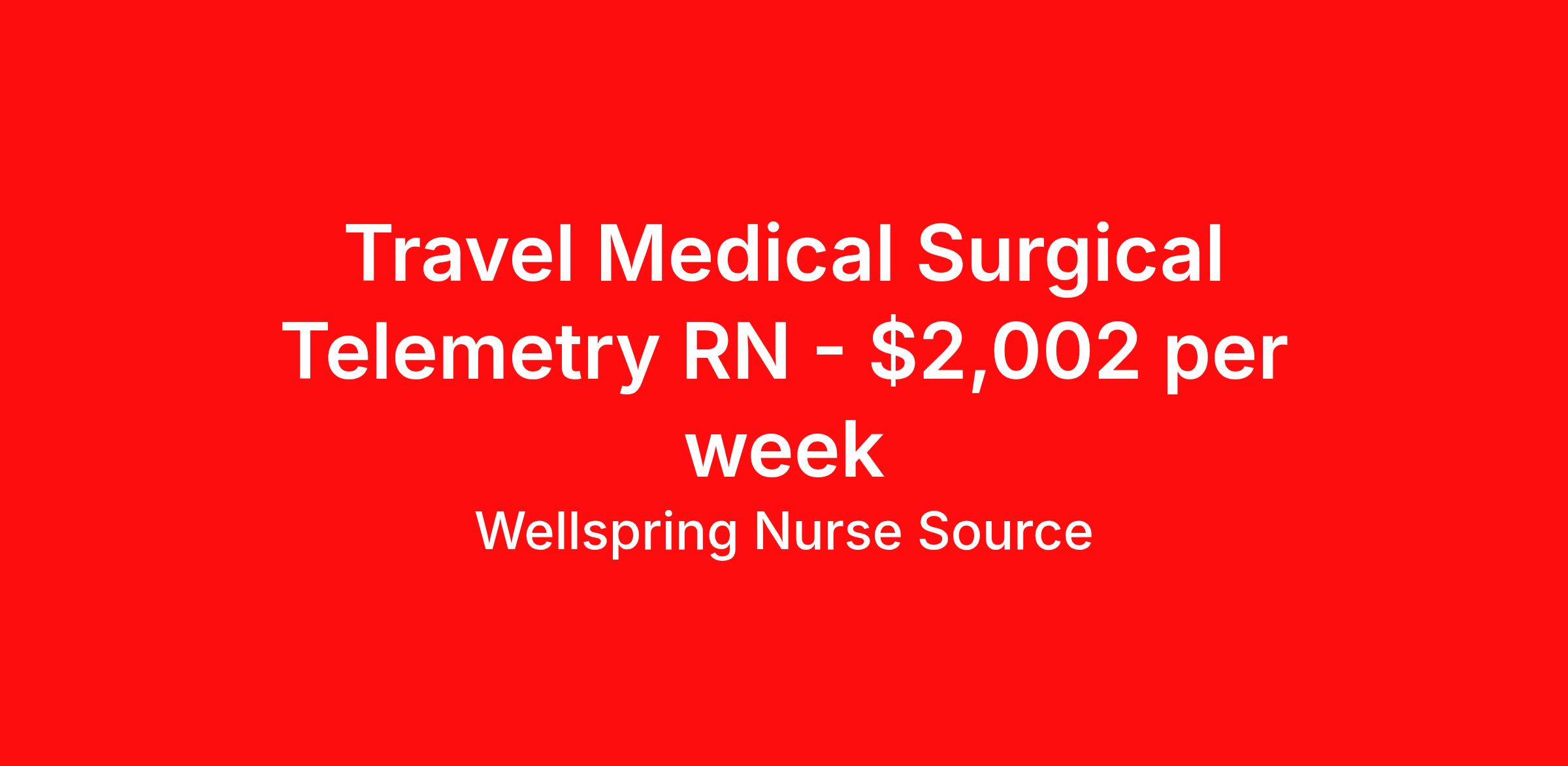 Wellspring Nurse Source is seeking a travel nurse RN Med Surg / Telemetry for a travel nursing job in Morgantown, West Virginia. Job Description & Requirements Specialty: Med Surg / Telemetry Discipline: RN Start Date: ASAP Duration: 13 weeks 36 hours per week Shift: 12 hours, nights Employment Type: Travel Consults and coordinates with health care team members to assess, plan, implement and evaluate patient care plans. Prepares and administers (orally, subcutaneously, through an IV) and records prescribed medications. Reports adverse reactions to medications or treatments. Educates patients on surgical procedures. Records patients’ medical information and vital signs. Monitors and adjusts specialized equipment used on patients, and interprets and records electronic displays. Wellspring Nurse Source Job ID 36120934. Pay package is based on 12 hour shifts and 36.0 hours per week (subject to confirmation) with tax-free stipend amount to be determined. Posted job title: RN MS About Wellspring Nurse Source Wellspring is nurse owned and operated which means that we get you, we stand behind you, and we advocate for you. We are 100% committed to helping you find your best job at the best rate. We are unwavering in our commitment to supporting our clinicians on every step of their travel adventure, assisting with everything from onboarding and payroll to on-the-job clinical support with a dedicated Clinician Success Team. You’re not just a number at Wellspring, you’re a valued member of our family. Join us and experience the Wellspring difference.
