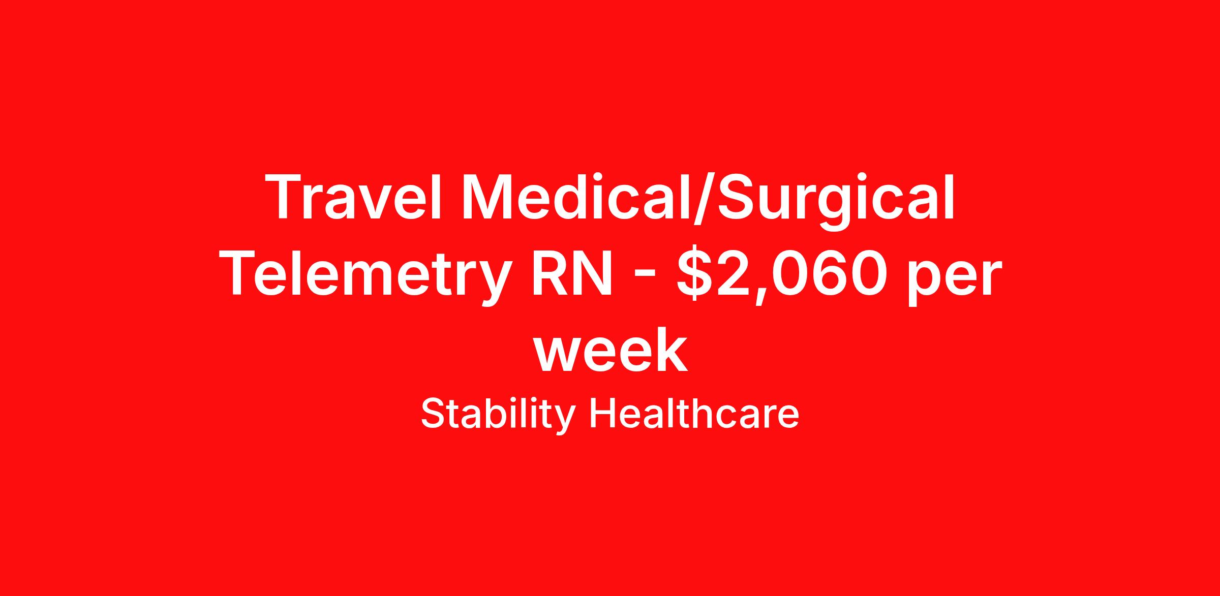Stability Healthcare is seeking a travel nurse RN Med Surg / Telemetry for a travel nursing job in Des Moines, Iowa. Job Description & Requirements Specialty: Med Surg / Telemetry Discipline: RN Start Date: 04/20/2026 Duration: 15 weeks 36 hours per week Shift: 12 hours, nights Employment Type: Travel Stability Healthcare is looking for a Tele Med-Surg RN contract position in Des Moines, IA. The Medical Surgical Telemetry Registered Nurse (RN) provides direct nursing care in accordance with established policies, procedures and protocols of the healthcare organization often specializing in Neuro, Ortho or Cardiac patients. *$600 travel bonus *Day 1 health insurance with United Healthcare *PTO plan start accruing on day 1, use during contract or cash out at the end! *Guaranteed stipend if facility calls you off *Extra hour bonus earn an additional hourly bonus for working over your weekly contracted hours Stability Job ID 823739. Pay package is based on 12 hour shifts and 36 hours per week (subject to confirmation) with tax-free stipend amount to be determined. Posted job title: Tele Med-Surg About Stability Healthcare Stability Healthcare was founded in 2009, with the mission of becoming the best Travel Nursing Agency in California. We have been rated one of the top travel nursing agencies and offer our nurses the highest paying travel nursing jobs available. We have access to the best travel assignments from 1000’s of facilities. You can start the year off in sunny California, spend the Spring in the Colorado Rockies, enjoy the Summer in the Mid-West, experience the change of seasons in Boston and New York, and hit the beaches of Florida in the winter. Our Nurses work in the best hospitals and health systems in the country. Benefits Guaranteed Hours Benefits start day 1