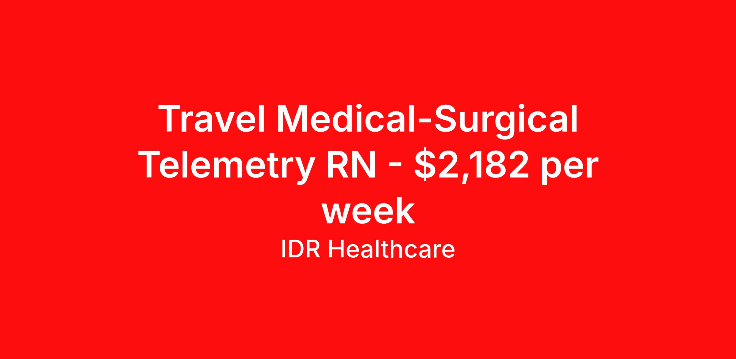 IDR Healthcare is seeking a travel nurse RN Med Surg / Telemetry for a travel nursing job in Des Moines, Iowa. Job Description & Requirements Specialty: Med Surg / Telemetry Discipline: RN Start Date: ASAP Duration: 13 weeks 36 hours per week Shift: 12 hours Employment Type: Travel IDR Healthcare is an awarding winning staffing firm that believes it is a privilege and awesome responsibility to serve those who selflessly care for others. Our mission is to empower healthcare professionals to achieve their fullest potential both personally and professionally while they create positive change within the healthcare community. We exercise true grit, tenacity, and authenticity while embracing and ownership mindset to go above and beyond providing healthcare professionals a world class experience. We are employee owned and our travelers and clinicians earn shares/equity by just completing multiple assignments! We have been named SIA’s Fastest Growing Staffing Firms and have won ClearlyRated® Best of Staffing for 11 consecutive years! This cements our commitment to clinician satisfaction earning top net promoter scores putting us in the top 2% of agencies in North America! TravelFarWithIDR and see what an extraordinary experience is all about! Benefits 2024 World Staffing Best Staffing Firms to Work For! ESOP (Equity) Healthcare Benefits for up to 30 days Between Assignments. Comprehensive Health Insurance Dental and Vision Insurance Sign-On, Completion, & Referral Bonus Programs License and Certification Reimbursement Weekly Pay and Competitive Compensation Large Network of Clients and Job Opportunities 401k retirement plan Exclusive Assignments IDR Job ID 486782. Pay package is based on 12 hour shifts and 36 hours per week (subject to confirmation) with tax-free stipend amount to be determined. About IDR Healthcare IDR Healthcare is an awarding winning staffing firm that believes it is a privilege and awesome responsibility to serve those who selflessly care for others. Our mission is to empower healthcare professionals to achieve their fullest potential both personally and professionally while they create positive change within the healthcare community. We exercise true grit, tenacity, and authenticity while embracing and ownership mindset to go above and beyond providing healthcare professionals a world class experience. We are employee owned and our travelers and clinicians earn shares/equity by just completing multiple assignments! We have been named SIA’s Fastest Growing Staffing Firms and have won ClearlyRated® Best of Staffing for 11 consecutive years! This cements our commitment to clinician satisfaction earning top net promoter scores putting us in the top 2% of agencies in North America! Help us give back! For every booked assignment, proceeds are donated to St. Jude and Feeding America! Last year we raised over $18,000 for St. Jude and provided over 49,000 meals for children in need. TravelFarWithIDR and see what it is all about! Benefits Weekly pay 401k retirement plan Referral bonus Medical benefits Dental benefits License and certification reimbursement Vision benefits