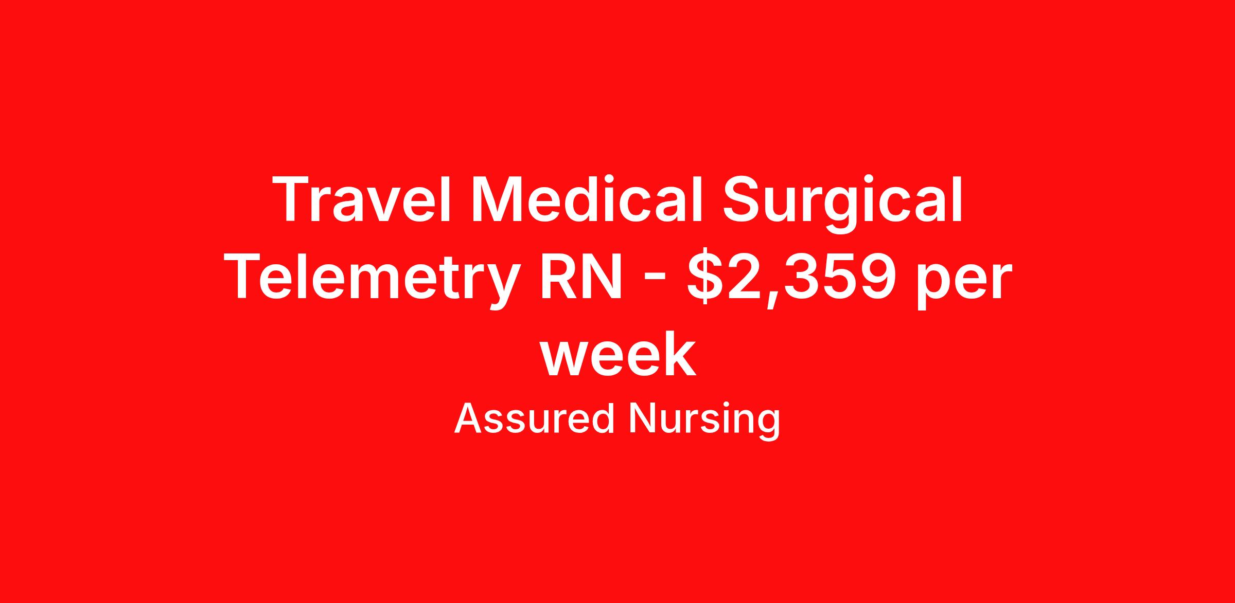 Assured Nursing is seeking a travel nurse RN Telemetry Med Surg for a travel nursing job in Kealakekua, Hawaii. Job Description & Requirements Specialty: Telemetry Discipline: RN Start Date: 05/18/2026 Duration: 13 weeks 36 hours per week Shift: 12 hours, flexible Employment Type: Travel Minimum 2 years of experience required. COVID Vaccine - Required. Travel experience highly preferred. ACLS, BLS - AHA REQUIRED. Comfortable with Drips - Required. Assured Nursing Job ID 36462529. Pay package is based on 12 hour shifts and 36.0 hours per week (subject to confirmation) with tax-free stipend amount to be determined. Posted job title: RN:Tele,08:00:00-20:00:00 Benefits Weekly pay Holiday Pay 401k retirement plan Referral bonus Medical benefits Dental benefits Vision benefits