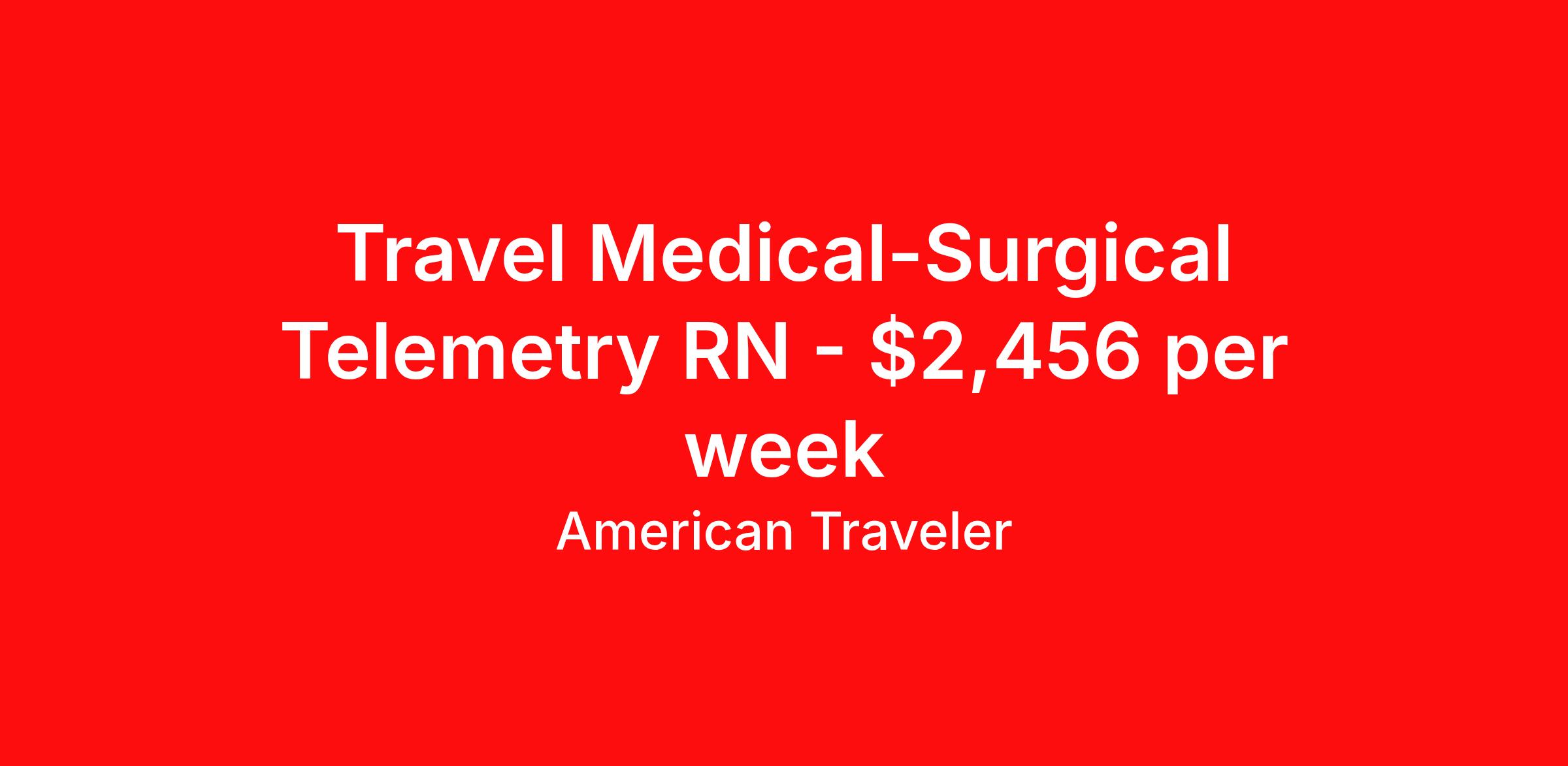 American Traveler is seeking a travel nurse RN Med Surg / Telemetry for a travel nursing job in Fayetteville, North Carolina. Job Description & Requirements Specialty: Med Surg / Telemetry Discipline: RN Start Date: 04/20/2026 Duration: 13 weeks 48 hours per week Shift: 12 hours, nights Employment Type: Travel Assignment Overview Shift: Nights, 4x12hrs Hours: 48 hrs/wk Start Date: Apr 20, 2026 Length: 13 weeks Openings: 1 Description American Traveler is hiring a travel RN for a Med/Surg Telemetry night shift position at a Level III Trauma Center and teaching hospital, requiring a minimum of 2 years of MS/Tele experience and an active NC or compact RN license. Details Short-term acute care hospital setting with 733 staffed beds, operating as a Level III Trauma Center and teaching hospital Med/Surg Telemetry unit with a patient ratio of 1:5-6 Night shift schedule: 4x12-hour shifts (7:00 PM – 7:00 AM) Every other weekend required No on-call requirements Floating within the hospital or to a sister campus may be required based on facility needs Charting performed in Epic (experience required) Requirements Active NC or compact RN license currently in hand — pending licenses not accepted Current certifications required: BLS, ACLS, and NIH Stroke Scale (NIHSS) Minimum 2 years of Med/Surg Telemetry nursing experience required Epic EMR experience required SSN and date of birth required for consideration Additional Information First-time travelers are welcome to apply Candidates must reside more than 50 miles from the main campus to be eligible for this position Scrub color required: royal blue and white Pre-start orientation modules are required (approximately 4–10 hours) RTO is subject to manager's discretion, with a general maximum of 4 days per contract Only one holiday off may be approved per contract Travelers who have previously worked at this facility must have been gone for at least 1 year before returning Night shift travelers may extend up to two times before being required to be away for at least 6 months prior to returning 13-week contract American Traveler Job ID P-684697. Pay package is based on 12 hour shifts and 48 hours per week (subject to confirmation) with tax-free stipend amount to be determined. Posted job title: Travel RN - Med/Surg Tele About American Traveler With over 25 years of experience, American Traveler has established a reputation for outstanding customer service. Our team ensures a smooth, worry-free experience for those starting on or expanding their travel nursing and allied careers. With thousands of travel nursing and allied jobs nationwide, our attentive and approachable recruiters find positions that align perfectly with your career aspirations and personal requirements. American Traveler offers exceptional benefits, including premium medical, dental, vision and life insurance beginning day one of your assignment, generous 401(k) match, substantial housing stipends, and more. Additionally, with 24/7 support and access to our in-house clinicians, you are assured confidence and comfort throughout your assignment. With our team behind you, you can relax and enjoy a rewarding travel career.