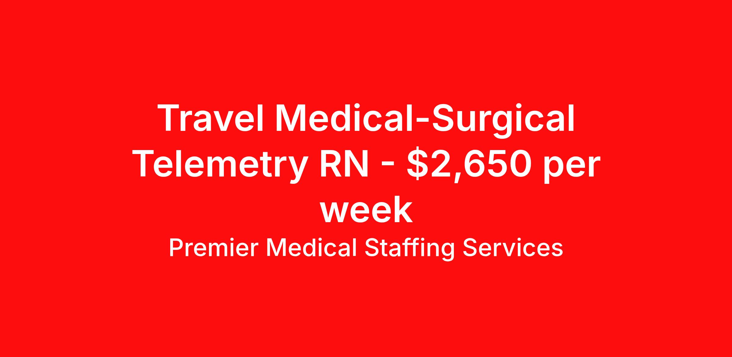 Travel Medical-Surgical Telemetry RN - $2,650 per week