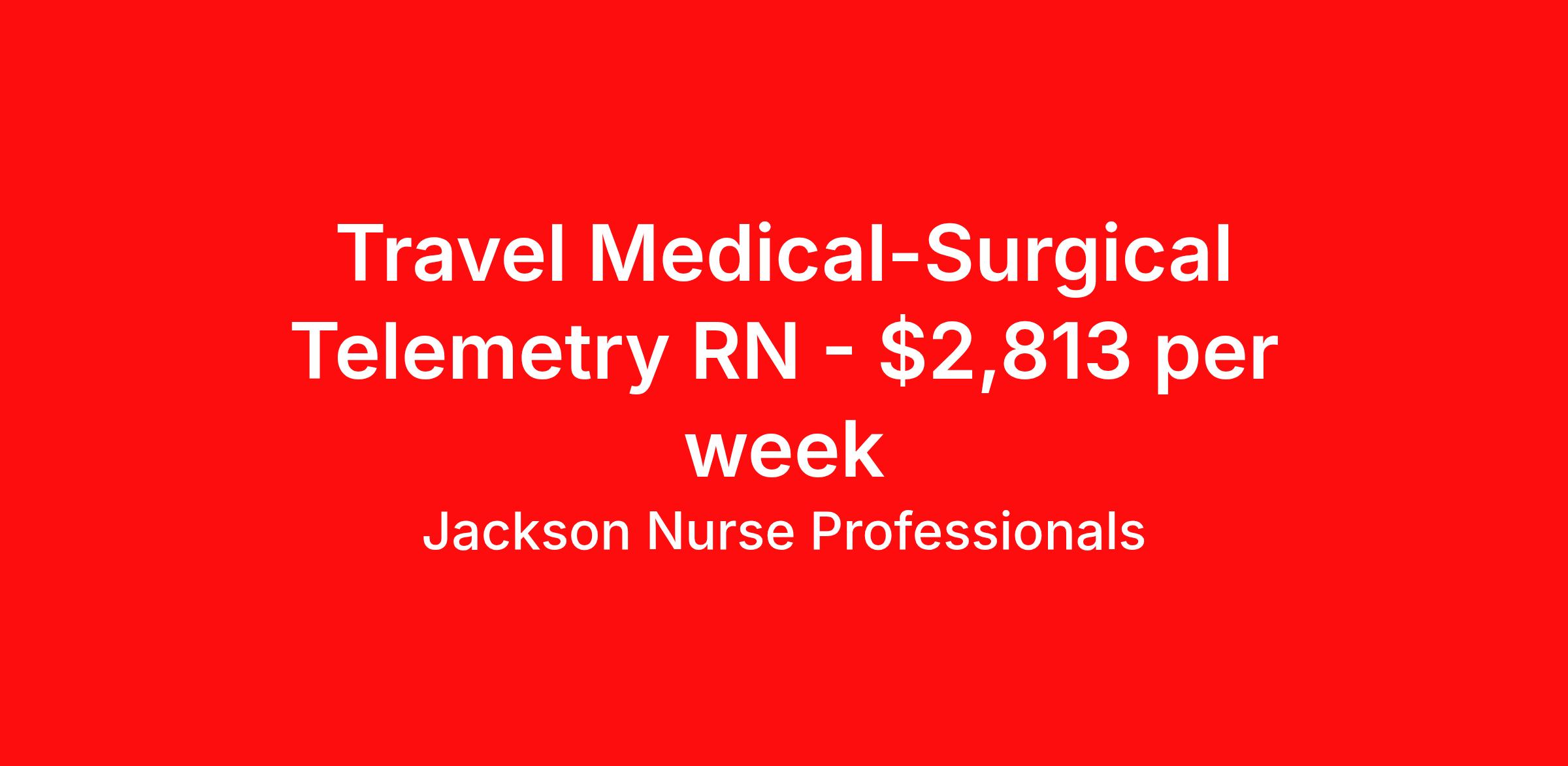 Jackson Nurse Professionals is seeking a travel nurse RN Med Surg / Telemetry for a travel nursing job in Rochester, New York. Job Description & Requirements Specialty: Med Surg / Telemetry Discipline: RN Start Date: 04/07/2026 Duration: 13 weeks 48 hours per week Shift: 12 hours, nights Employment Type: Travel At Jackson Nurse Professionals , we are dedicated to supporting travel nurses and helping you build a fulfilling nursing career. Whether you’re looking for your first or next travel nursing assignment, we specialize in connecting healthcare professionals with leading medical facilities. With a focus on personalized service and a wide range of opportunities, we make it easier than ever for nurses to find the right balance of adventure and professional growth. Qualifications: 2 years of recent experience in area of specialty listed on job Current BLS required (certifications vary by location – job may require ACLS) Valid license and/or certification in state of practice Valid Driver's License Background and drug screen Benefits: Full Medical, Dental and Vision Insurance 401(k) with Employer Match 24/7/365 Support from your Recruiter available by text, phone, or email Referral Bonus Program: Give $200, Get $500 for every referral Same Day Immediate Pay Access Certification & Licensure Reimbursement Apply today to experience the Jackson Nurse Professionals difference! Jackson Nurse Professionals Job ID 2476035. Pay package is based on 12 hour shifts and 48 hours per week (subject to confirmation) with tax-free stipend amount to be determined. About Jackson Nurse Professionals Filling critical needs in patient care, Jackson Nurse Professionals delivers cost-effective travel nurse staffing solutions to over 500 hospitals, outpatient clinics, and home health clients nationwide. Awarded Best of Staffing - Talent and Client 2024, and rated as a Top Workplace 2023 by the Orlando Sentinel, Jackson Nurse Professionals goes the extra mile to provide travel nurses the career they deserve, while providing clients with a large range of highly skilled nurses to fill short, long-term, and temporary assignments. As a member of Jackson Healthcare’s family of award-winning staffing companies, we’re part of a growing community that’s impacting 10 million patients nationwide. Join our mission to improve the delivery of patient care, and the lives of everyone we touch.