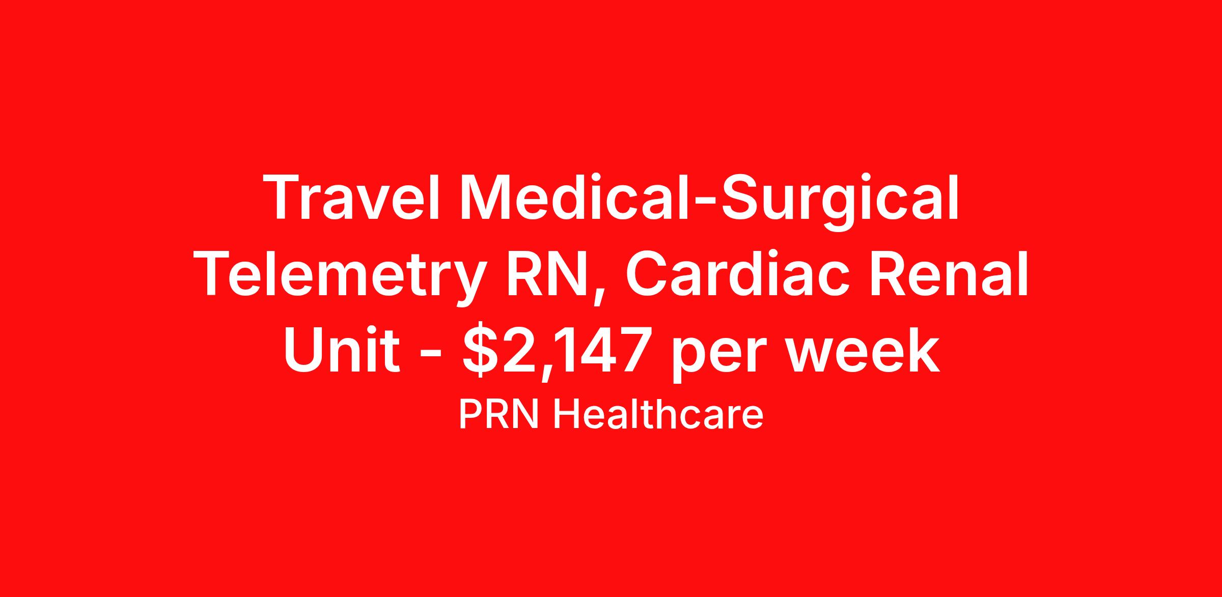Travel Medical-Surgical Telemetry RN, Cardiac Renal Unit - $2,147 per week