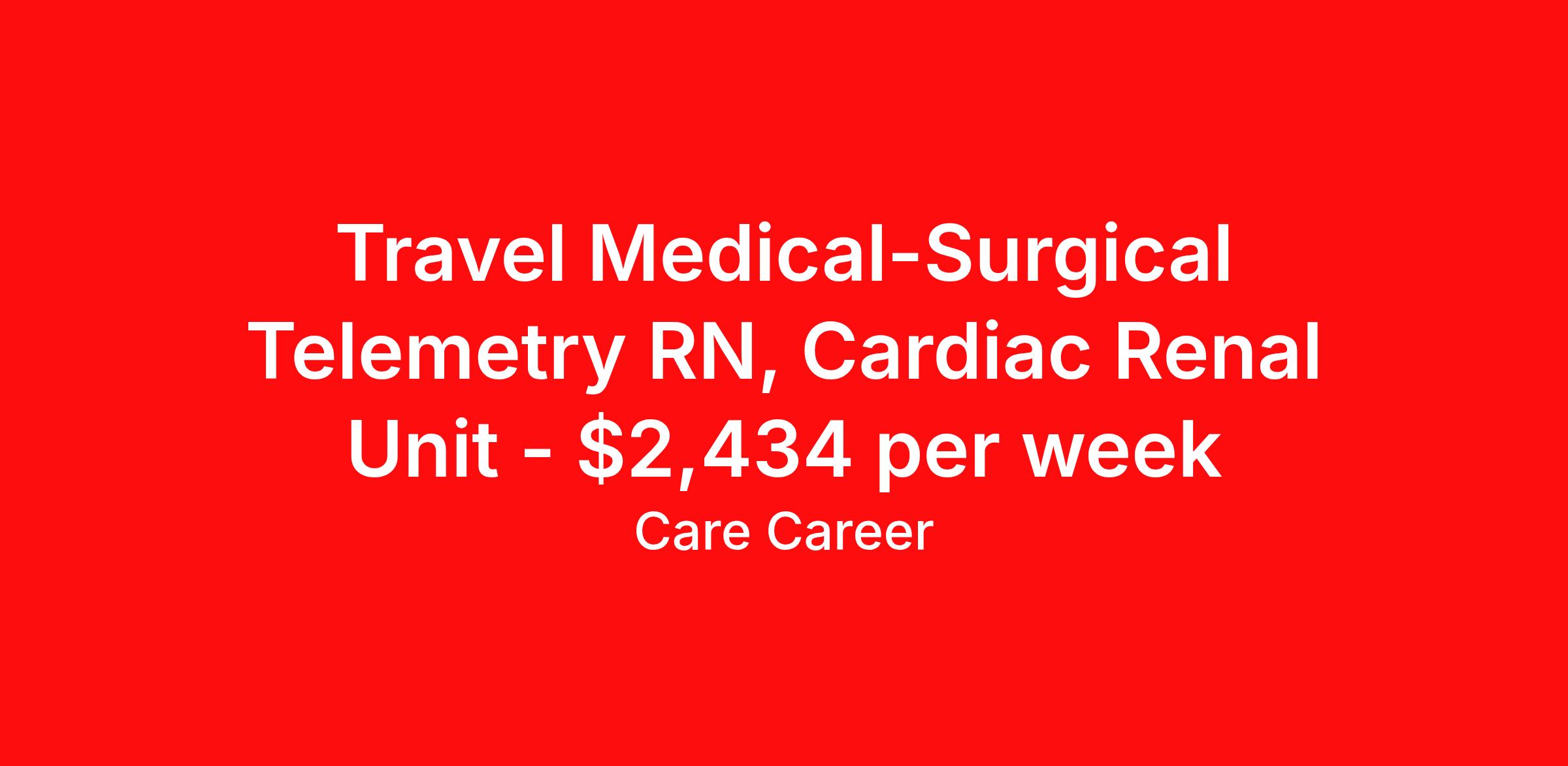 Travel Medical-Surgical Telemetry RN, Cardiac Renal Unit - $2,434 per week