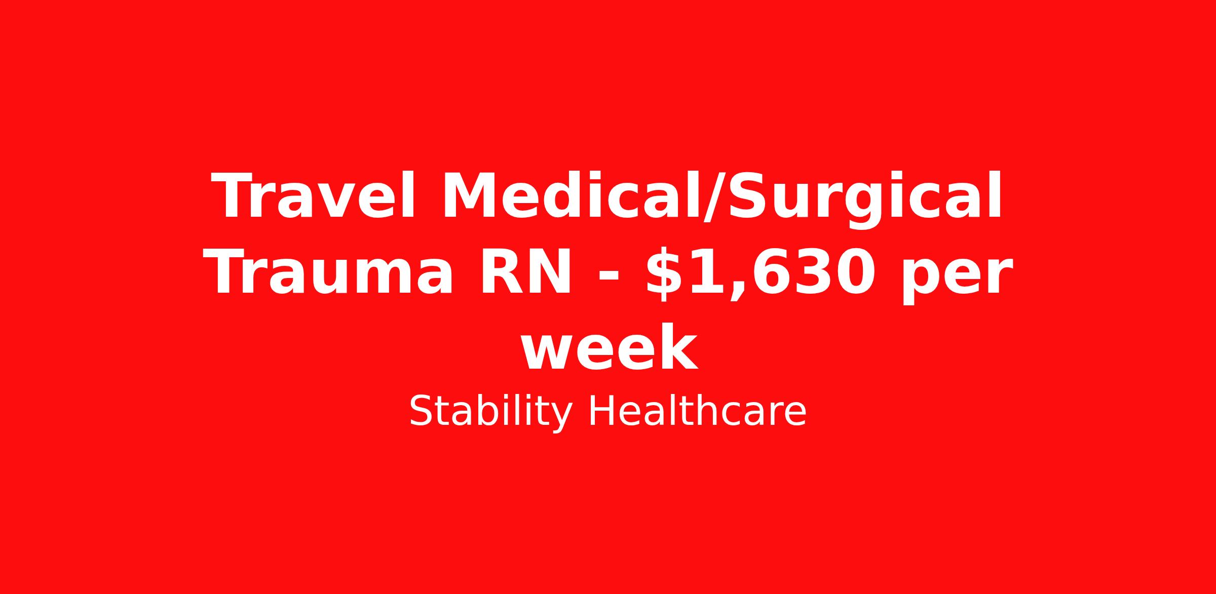Stability Healthcare is seeking a travel nurse RN ICU - Intensive Care Unit for a travel nursing job in Atlanta, Georgia. Job Description & Requirements Specialty: ICU - Intensive Care Unit Discipline: RN Duration: 8 weeks 36 hours per week Shift: 12 hours, nights Employment Type: Travel Stability Healthcare is looking for a Med-Surg RN contract position in Atlanta, GA. The majority of hospitalized patients are admitted to M/S either directly or after surgery. M/S is also where patients who have been in critical care (ICU) are transferred when they no longer need critical care but still require nursing care. *$600 travel bonus *Day 1 health insurance with United Healthcare *PTO plan start accruing on day 1, use during contract or cash out at the end! *Guaranteed stipend if facility calls you off *Extra hour bonus earn an additional hourly bonus for working over your weekly contracted hours Stability Job ID 821572. Pay package is based on 12 hour shifts and 36 hours per week (subject to confirmation) with tax-free stipend amount to be determined. Posted job title: Med-Surg About Stability Healthcare Stability Healthcare was founded in 2009, with the mission of becoming the best Travel Nursing Agency in California. We have been rated one of the top travel nursing agencies and offer our nurses the highest paying travel nursing jobs available. We have access to the best travel assignments from 1000’s of facilities. You can start the year off in sunny California, spend the Spring in the Colorado Rockies, enjoy the Summer in the Mid-West, experience the change of seasons in Boston and New York, and hit the beaches of Florida in the winter. Our Nurses work in the best hospitals and health systems in the country. Benefits Guaranteed Hours Benefits start day 1