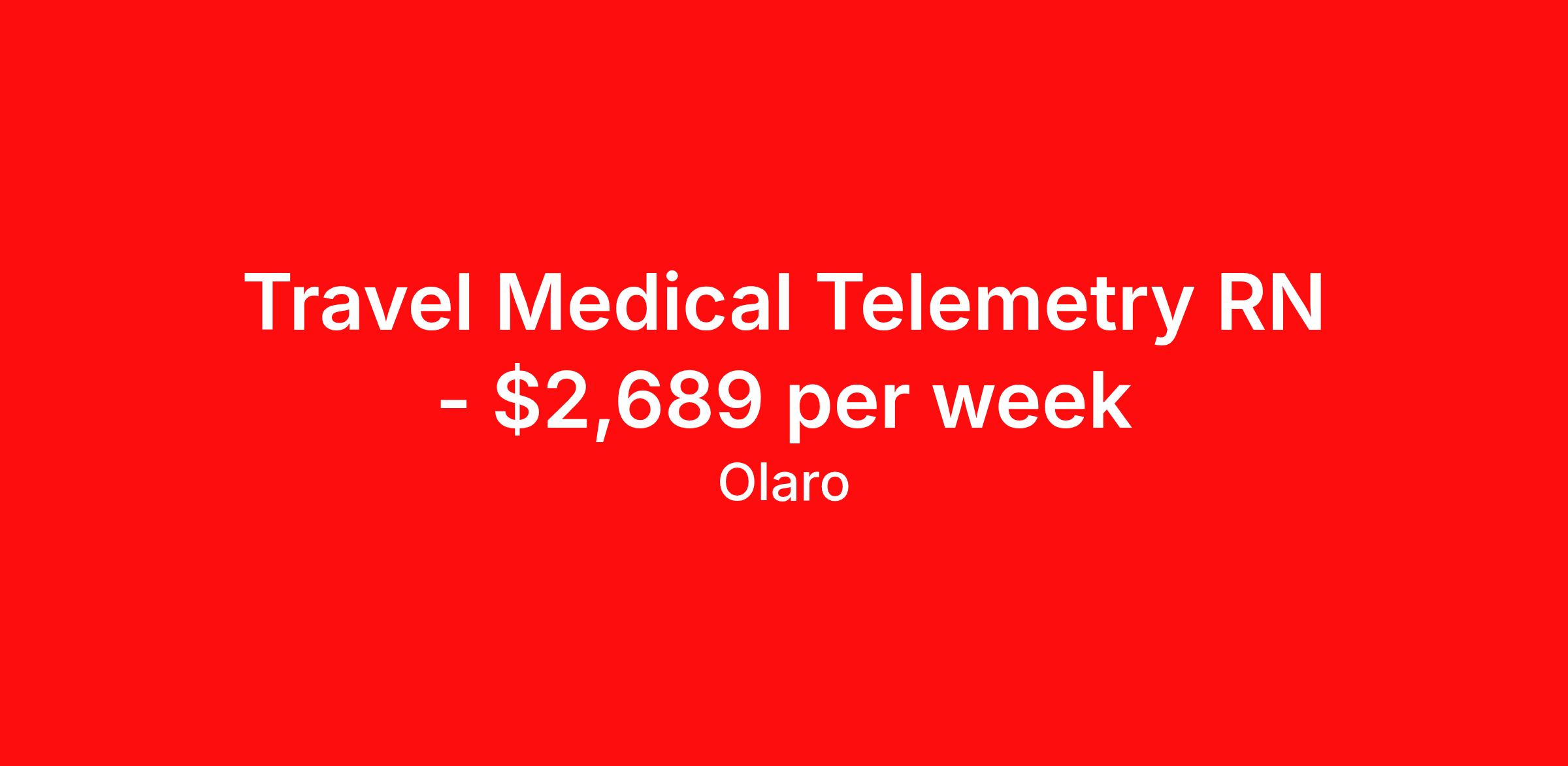 Travel Medical Telemetry RN - $2,689 per week