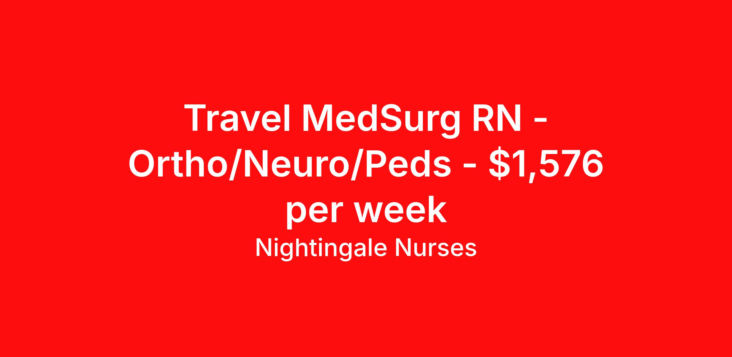 Nightingale Nurses is seeking a travel nurse RN Med Surg for a travel nursing job in Thomasville, Georgia. Job Description & Requirements Specialty: Med Surg Discipline: RN Start Date: 04/06/2026 Duration: 13 weeks 36 hours per week Shift: 12 hours, days Employment Type: Travel About Nightingale Nurses the first name in travel nursing You may not realize it, but as an RN with real world hospital experience, you are legendary. To the lives you’ve helped save, the patients you’ve cared for, and to the hospitals where you’ve done it. And you’re just getting started. Legendary is where Nightingale begins. We’re the first name in travel nursing, representing only the very best RNs. That’s why hospitals prefer us, allowing us to offer exceptional travel nursing assignments all over the US, as well as the highest pay rates and most extensive benefits in the industry. Nightingale facilitates every aspect of your travel nursing assignment, so you can focus on doing what you do best. We want you to grow, explore, and enjoy unrivaled liberty, the freedom to nurse.