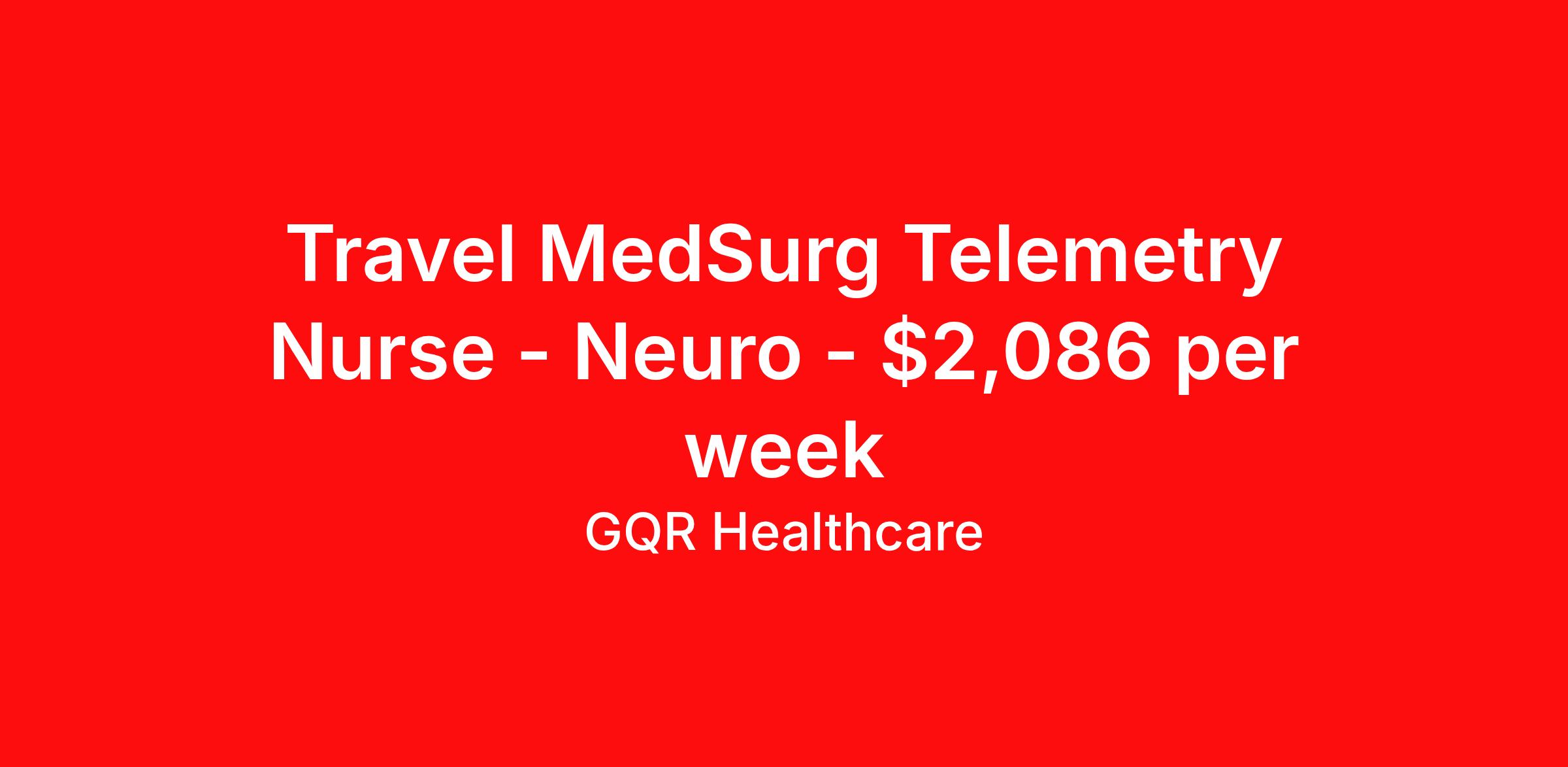 Travel MedSurg Telemetry Nurse - Neuro - $2,086 per week