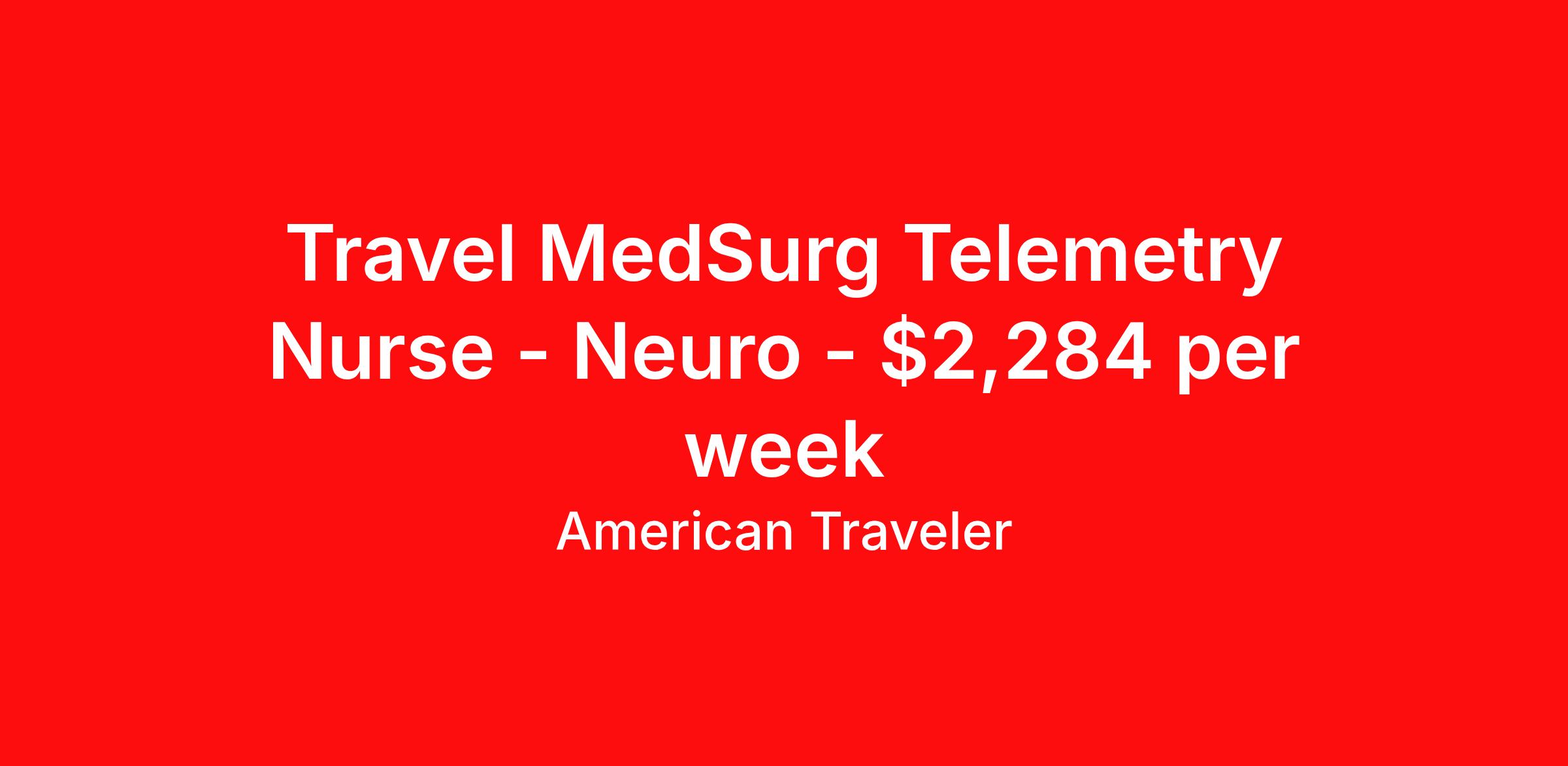 Travel MedSurg Telemetry Nurse - Neuro - $2,284 per week