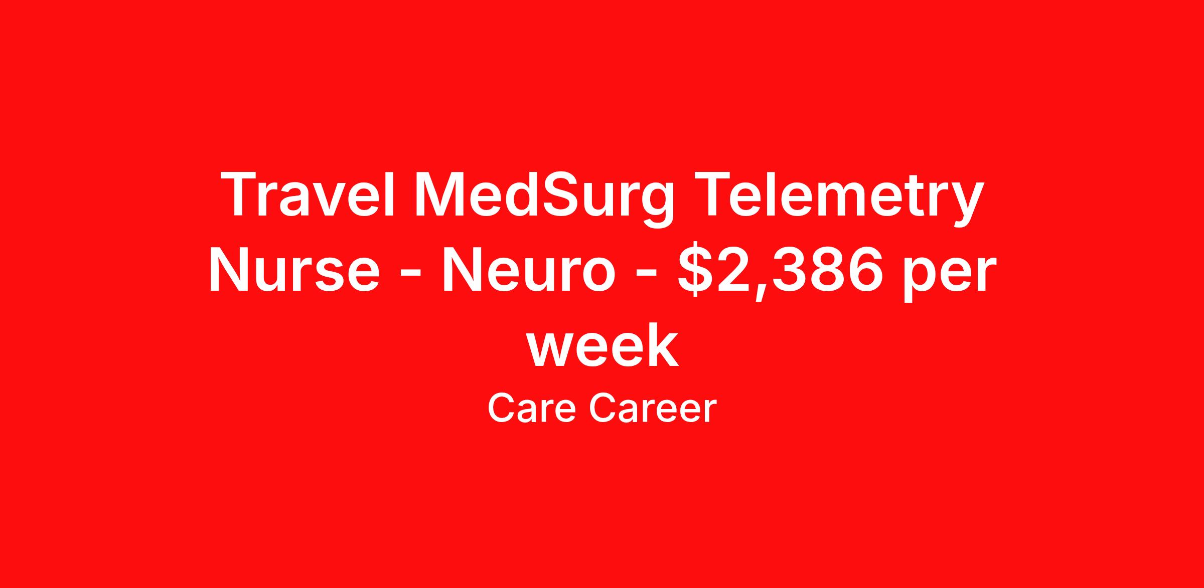 Travel MedSurg Telemetry Nurse - Neuro - $2,386 per week