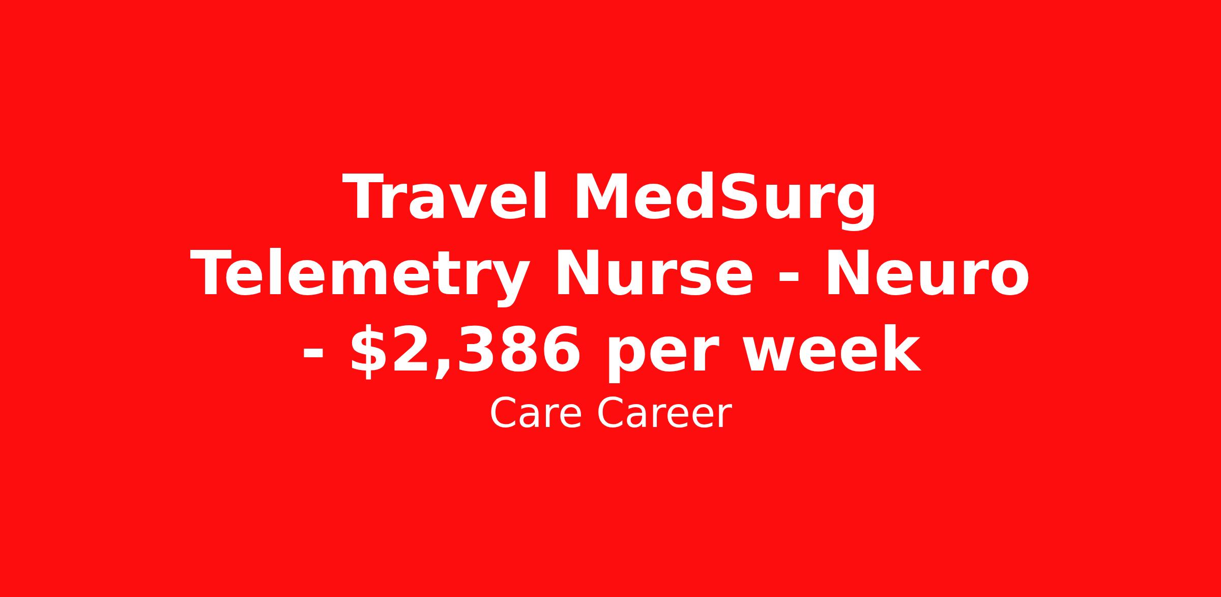 Travel MedSurg Telemetry Nurse - Neuro - $2,386 per week