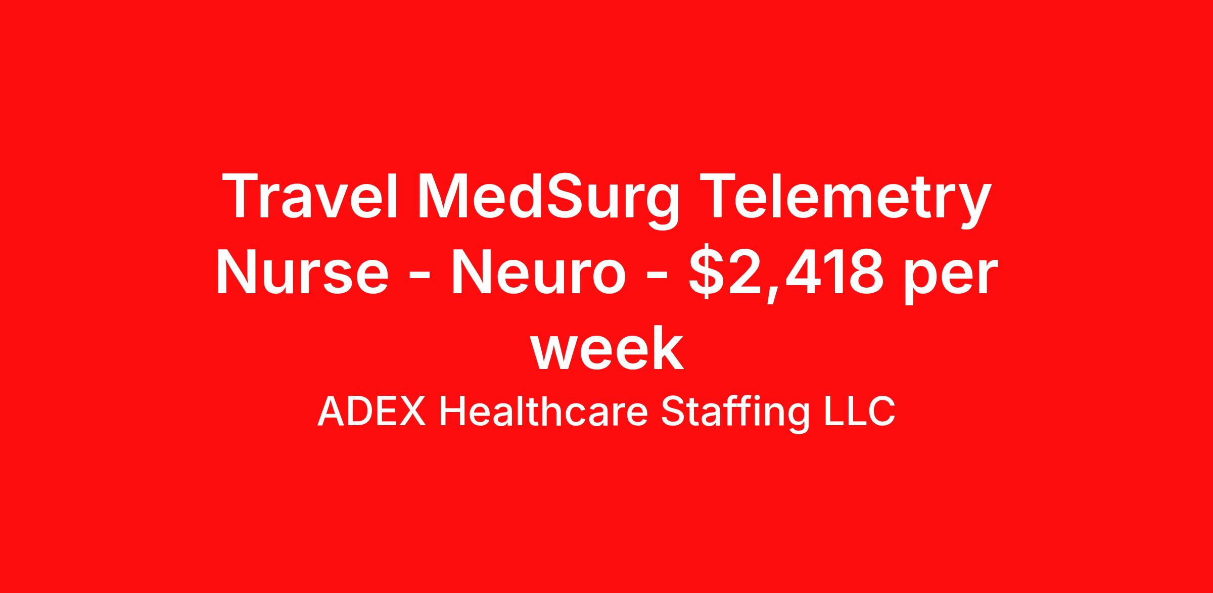ADEX Healthcare Staffing LLC is seeking a travel nurse RN Telemetry for a travel nursing job in Omaha, Nebraska. Job Description & Requirements Specialty: Telemetry Discipline: RN Start Date: 04/13/2026 Duration: 13 weeks 36 hours per week Shift: 12 hours, nights Employment Type: Travel RN Position Job Notes: Travel or Local Registered Nurse needed for ASAP start. A minimum of 2 years of recent hospital bedside experience is required. Candidates must be able to start within 5 weeks. Opportunity for extension upon successful completion of the initial assignment. $750 referral bonus available. Opportunity: RN - Tele Neuro Job Details: • Work 12-hour night shifts from 6:30 PM to 7:00 AM • Care for 25-bed Med Surg Neuro unit on 4th Floor North with 1:5-6 nurse-to-patient ratios • Every other weekend requirement with 2-3 holiday shifts required from Thanksgiving to New Years • Must pass open book exam on Friday during orientation with 90% score to continue assignment • Two days of unit-specific orientation provided • Required certifications: BLS (AHA) and NIHSS • Dress code requires navy blue scrubs for RNs • Must live outside 50-mile radius and cannot be employed with CommonSpirit facilities • Driver's license required at submittal for radius verification • Artificial nails prohibited - refusal to remove leads to contract termination • Travel experience preferred but will consider strong candidates without • No license or background hits accepted • Float to other medical surgical areas or units with MedSurg patients as needed • Care for Med Surg/Tele patients including joint replacements, fractures, colon resections, COPD exacerbation, prostatectomy, cellulitis, sepsis, ortho trauma, GI bleeds, pneumonia, and failure to thrive • Titrate heparin, lidocaine, and ketamine drips; manage PCA pumps • Work with diverse patient populations including Spanish, Karen, and Burmese speaking patients • Use EPIC charting system • Hospital may cancel up to 4 shifts per 13-week assignment Facility: This Level 1 trauma center is a leading academic medical facility providing comprehensive acute care services. The facility features modern equipment including mechanical lifts and advanced telemetry monitoring systems. The organization emphasizes patient-centered care with a focus on hourly rounding, responsiveness, and culturally diverse patient populations. The facility maintains high standards for patient care and safety protocols. Location: Omaha, NE Omaha offers a vibrant metropolitan experience with a strong healthcare community and excellent work-life balance. The city provides diverse cultural attractions, outdoor recreational opportunities, and a reasonable cost of living, making it an attractive destination for healthcare professionals seeking career growth in a thriving medical hub. Adex Job ID 1069609. Pay package is based on 12 hour shifts and 36 hours per week (subject to confirmation) with tax-free stipend amount to be determined. About ADEX Healthcare Staffing LLC ADEX has been placing healthcare professionals across the US since 2004. Originally founded in Atlanta, GA, the company's headquarters are now located in Tampa, FL. JCAHO certified since 2009. Benefits Referral bonus