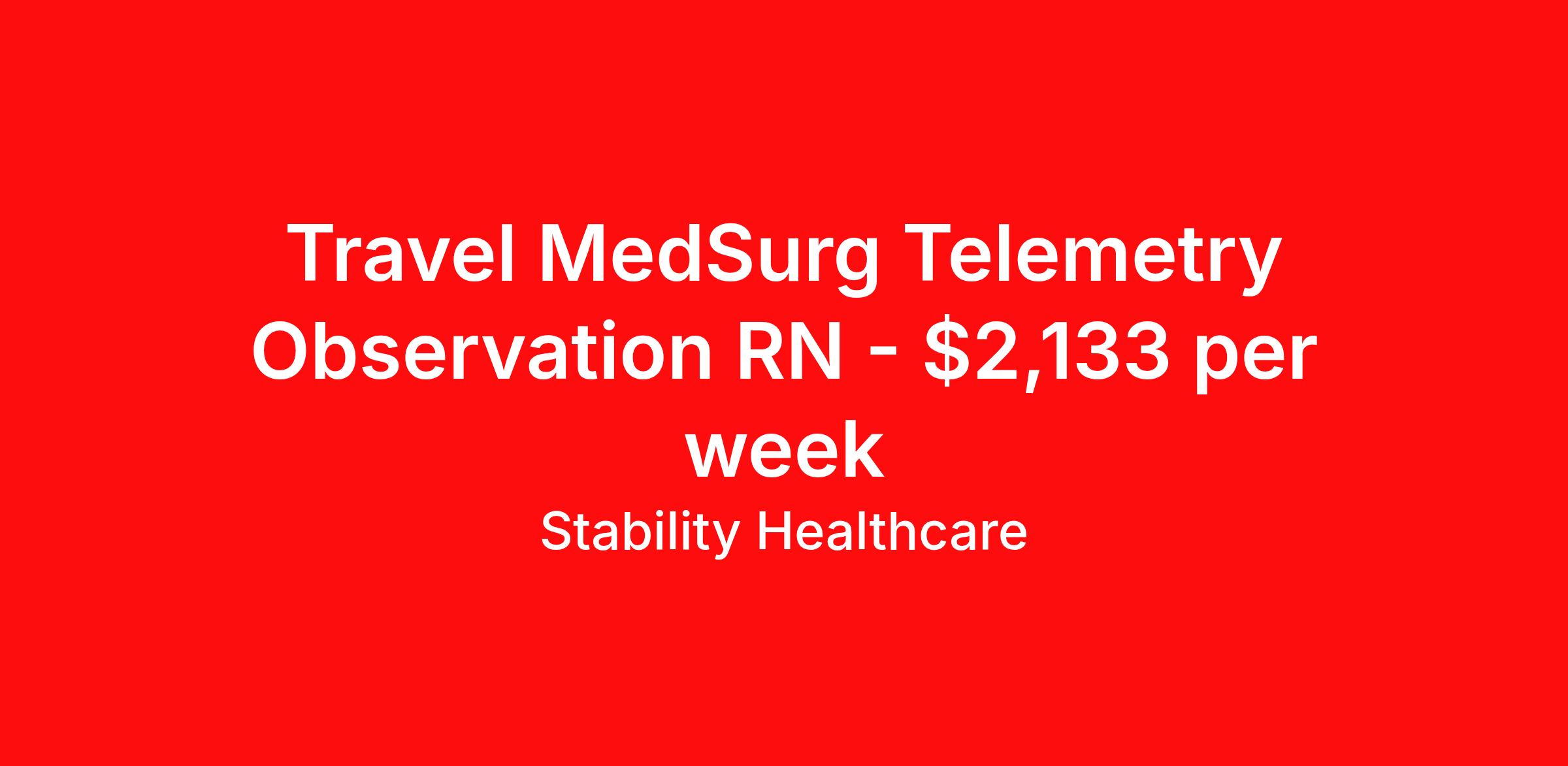 Stability Healthcare is seeking a travel nurse RN Med Surg / Telemetry for a travel nursing job in Show Low, Arizona. Job Description & Requirements Specialty: Med Surg / Telemetry Discipline: RN Duration: 13 weeks 36 hours per week Shift: 12 hours, nights Employment Type: Travel Stability Healthcare is looking for a Tele Med-Surg RN contract position in Show Low, AZ. The Medical Surgical Telemetry Registered Nurse (RN) provides direct nursing care in accordance with established policies, procedures and protocols of the healthcare organization often specializing in Neuro, Ortho or Cardiac patients. *$600 travel bonus *Day 1 health insurance with United Healthcare *PTO plan start accruing on day 1, use during contract or cash out at the end! *Guaranteed stipend if facility calls you off *Extra hour bonus earn an additional hourly bonus for working over your weekly contracted hours Stability Job ID 828045. Pay package is based on 12 hour shifts and 36 hours per week (subject to confirmation) with tax-free stipend amount to be determined. Posted job title: Tele Med-Surg About Stability Healthcare Stability Healthcare was founded in 2009, with the mission of becoming the best Travel Nursing Agency in California. We have been rated one of the top travel nursing agencies and offer our nurses the highest paying travel nursing jobs available. We have access to the best travel assignments from 1000’s of facilities. You can start the year off in sunny California, spend the Spring in the Colorado Rockies, enjoy the Summer in the Mid-West, experience the change of seasons in Boston and New York, and hit the beaches of Florida in the winter. Our Nurses work in the best hospitals and health systems in the country. Benefits Guaranteed Hours Benefits start day 1