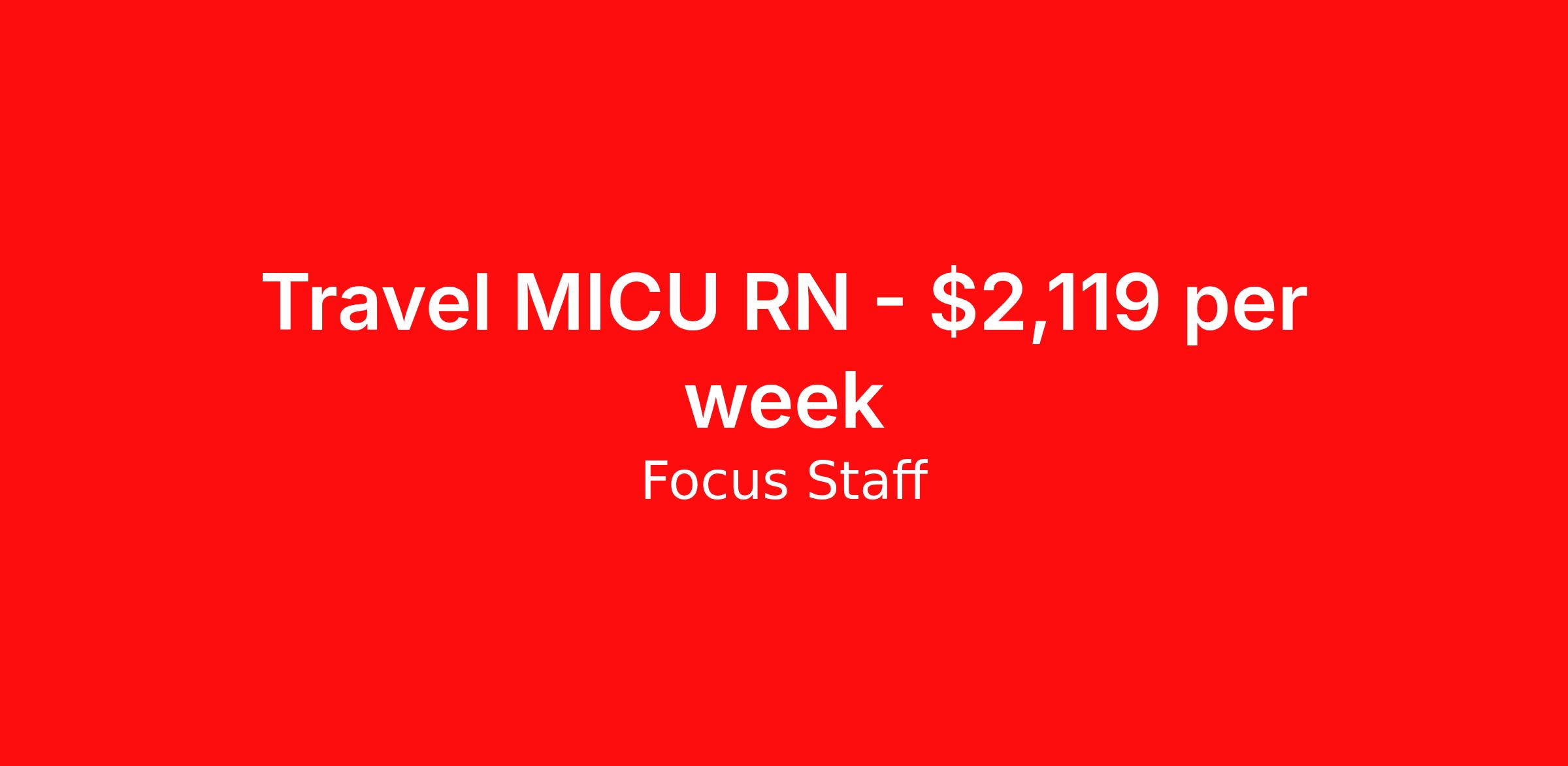 Focus Staff is seeking a travel nurse RN ICU - Intensive Care Unit for a travel nursing job in Salem, Massachusetts. Job Description & Requirements Specialty: ICU - Intensive Care Unit Discipline: RN Start Date: 04/19/2026 Duration: 13 weeks 36 hours per week Shift: 12 hours, nights Employment Type: Travel Ready for a travel adventure that makes a real difference? Focus Staff is seeking an adaptable and compassionate Travel ICU (Intensive Care Unit) RN for a high-impact travel contract in Salem, MA . In this role, you'll provide critical care to patients in intensive care units, working alongside dedicated professionals to deliver exceptional patient outcomes. Contract Length: 13 Weeks Start Date: 04/19/2026 Shift: Nights Why our Travel ICU RNs choose Focus Staff: Rewarding Your Commitment : Weekly direct deposits, housing stipends, 401(k) with matching, and loyalty/referral bonuses. Your Wellbeing, Our Priority : Medical, dental, vision, and life insurance from day one, no waiting period. Journey Made Simple : Travel assistance, relocation support, licensure reimbursement, and exclusive hotel discounts. Flexibility Meets Support : Dedicated recruiters, 24/7 support, flexible scheduling, and pet-friendly accommodations. Requirements: Minimum of 1-2 years of experience Valid MA RN License Current Basic Life Support (BLS) and Advanced Cardiac Life Support (ACLS) certification Eligible to work in the United States About Focus Staff: Focus Staff is a traveler-first healthcare staffing agency connecting talented travel nurses and allied health professionals with top assignments nationwide, prioritizing your unique needs and giving you complete control over your journey. Our mission is to help you create the life you love while exploring the country, advancing your healthcare career with competitive pay, and doing what you do best, providing exceptional patient care that makes a difference. Interested in becoming a traveler with Focus Staff? Discover why travelers choose us, apply today! Other Information: Job Title: Travel ICU Nurse Employment Time: Contract/Travel Date Posted: 03/06/2026 04:49:08 PM Valid Through: 07/18/2026 Job City: Salem Job State: MA Job Country: USA Shift: Nights Job ID: a0xVt00000JP8KXIA1 Hiring Organization: Focus Staff Focus Staff is an EEO/AA (Equal Employment Opportunity and Affirmative Action) Employer. Estimated pay package based on bill rate at time job was posted. Bill rates can change frequently and without notice. Exact pay package may vary based on several factors, including, but not limited to, guaranteed hours, travel distance, demand, experience, etc. Focus Staff Job ID a0xVt00000JP8KXIA1. Pay package is based on 12 hour shifts and 36 hours per week (subject to confirmation) with tax-free stipend amount to be determined. Posted job title: Travel RN ICU - Intensive Care Unit Registered Nurse About Focus Staff Your Journey, Our Focus. Travel Confidently, Care Boldly with Focus Staff. At Focus Staff, we’re here to make your travel healthcare career rewarding, seamless, and stress-free. Whether you’re a travel nurse, therapist, or allied health professional, we take care of the details so you can focus on what you do best — caring for others. Our mission is simple: to help healthcare heroes like you thrive, no matter where your journey takes you. With thousands of job opportunities across all 50 states, our dedicated recruiters work closely with you to match you to the right assignment, based on what matters most to you — pay, location, benefits, or career growth. From day one, you’ll enjoy premium benefits like medical coverage that bridges between assignments, 401K matching, travel and licensing reimbursements, and personalized housing support. Plus, our team is here for you 24/7, with clinical support available whenever you need guidance or backup. At Focus Staff, we believe in making every assignment a smooth, comfortable, and empowering experience. Let’s make your next adventure your best one yet.