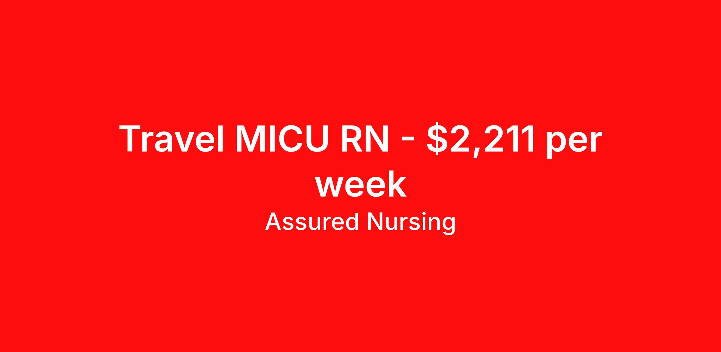 Assured Nursing is seeking a travel nurse RN ICU - Intensive Care Unit for a travel nursing job in Salem, Massachusetts. Job Description & Requirements Specialty: ICU - Intensive Care Unit Discipline: RN Start Date: 05/03/2026 Duration: 13 weeks 36 hours per week Shift: 12 hours, days, nights, rotating Employment Type: Travel MICU RN Days/Eves/Nights & EOW - 36hrs (Floating Required) 2yrs. of continuous MICU experience required - MUST BE ABLE TO READ TELE STRIPS FREE on-site Parking Unit Name: Level III Trauma Center. Intensive Care Unit (ICU) with Med Surg Floating required. Brief Unit Description: 20-bed (MICU) Medical/Surgical ICU. We care for a wide range of adult patients with diagnosis such as Substance Abuse/Overdose, severe Psychiatric conditions, DKA, Sepsis, GI bleed, Respiratory Failure, Cardiac Arrest, Renal Failure, and Cardiogenic Shock. Attendings and Residents are present in the ICU 24 hours/day. Salem Hospital is a 400 bed complex community facility that has 220 Med Surg beds plus the ICU, Maternity, etc. Years of Experience Required: 2 years of Adult ICU Travel experience required. 2 years of continuous work experience in one location, preferably a MICU. Floating Required: Yes, (mostly Medical/Surgical Units, could be up to 4 or 5 patients). Telemetry competency required. Rotating Shifts Required: All Day positions are Day Rotate. Day rotators may be rotated between (7a-7p, 11a-11p or 7p-7a) shifts when needed. Night shift does not rotate. RN to Patient Ratio: 1:2 or 1:1 with high acuity; 1:4 or 1:5 when Floated to other Med/Surg areas. Patient Population: All. Bed Count: 20 beds. EMR (Charting System): EPIC. Certifications Required: Active Massachusetts RN License. BLS, ACLS. Assured Nursing Job ID 36080719. Pay package is based on 12 hour shifts and 36.0 hours per week (subject to confirmation) with tax-free stipend amount to be determined. Posted job title: RN:ICU,19:00:00-07:00:00 Benefits Weekly pay Holiday Pay 401k retirement plan Referral bonus Medical benefits Dental benefits Vision benefits