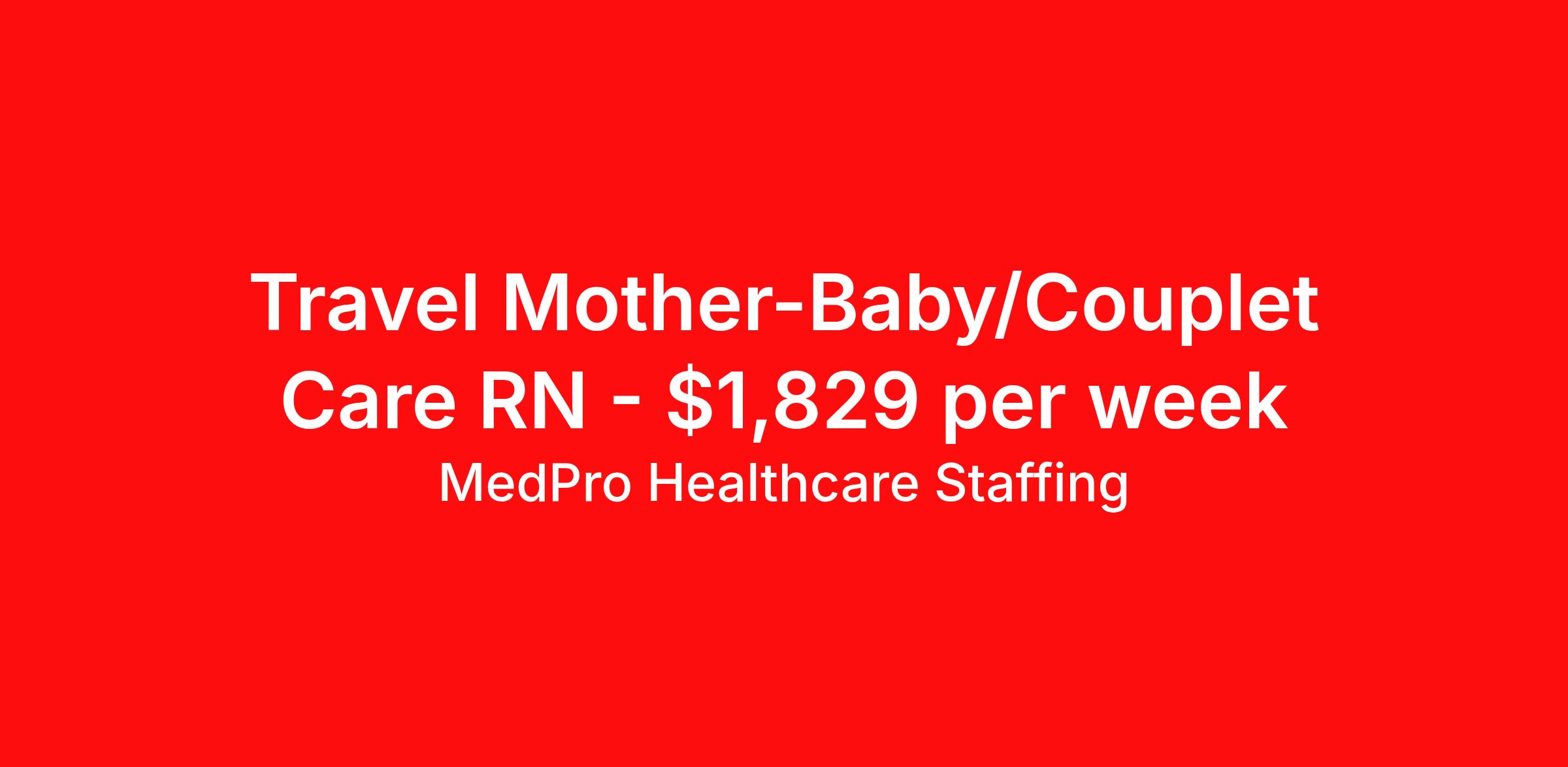 MedPro Healthcare Staffing is seeking a travel nurse RN Maternal - Newborn for a travel nursing job in Columbus, Ohio. Job Description & Requirements Specialty: Maternal - Newborn Discipline: RN Start Date: 04/20/2026 Duration: 13 weeks 36 hours per week Shift: 12 hours, nights Employment Type: Travel MedPro Healthcare Staffing , a Joint Commission-certified staffing agency, is seeking a quality Postpartum / Mother-Baby Registered Nurse (RN) for a travel assignment with one of our top healthcare clients. Requirements Active RN License Degree from accredited nursing program BLS, ACLS & NRP Certification Eighteen months of recent experience in an Acute Care Mother/Baby setting Other requirements to be determined by our client facility Benefits Weekly pay and direct deposit Full coverage of all credentialing fees Private housing or housing allowance Group Health insurance for you and your family Company-paid life and disability insurance Travel reimbursement 401(k) matching Unlimited Referral Bonuses up to $1,000 Duties Responsibilities The Postpartum / Mother-baby nurse (RN) educates, and assists new mothers with physical and emotional needs during the post partum period. They perform the dual role of caring for the infants, and educating mothers about care. Responsible for caring for both moms and their newborns after delivery. RN plays a crucial role in the hours following delivery, monitoring mothers and helping to ensure proper recovery. Must recognize postpartum depression and teach new moms how to address emotions. Teach the new parents on how to care, bathe breastfeed and/or bottle-feed the newborn and monitor his or her health. About Agency MedPro Healthcare Staffing is a Joint Commission certified provider of contract staffing services. Since 1983, we have placed nursing and allied travelers in top healthcare facilities nationwide. Join us today for your very own MedPro Experience®. If qualified and interested, please call for immediate consideration. MedPro Staffing is an Equal Opportunity Employer. All applicants will be considered for employment without attention to race, color, religion, national origin, age, sex, disability, marital status or veteran status. Key Words: Nurse, Registered Nurse, RN, Mother Baby, Postpartum, Travel RN, Travel Assignment, Contract Nurse, Agency RN *Weekly payment estimates are intended for informational purposes only and include a gross estimate of hourly wages and reimbursements for meal, incidental, and housing expenses. Your recruiter will confirm your eligibility and provide additional details. MedPro Job ID a0Fcx00000GbsHxEAJ. Pay package is based on 12 hour shifts and 36 hours per week (subject to confirmation) with tax-free stipend amount to be determined. Posted job title: Postpartum / Mother-Baby RN Nursing: Mother - Baby. About MedPro Healthcare Staffing At MedPro Healthcare Staffing , we believe no one cares more for caregivers than we do. Our mission is simple: you focus on your patients, and we’ll take care of the rest. As a Joint Commission-certified leader in temporary and contract healthcare staffing since 1983, MedPro has proudly connected nursing and allied travelers with top healthcare facilities across the nation. With thousands of job opportunities available nationwide, we make it easy to find assignments that align with your goals and lifestyle. Our on-staff clinical support team—alongside a compassionate group of experienced recruiters—provides hands-on guidance every step of the way. From Day 1 medical benefits and a 401(k) plan to personalized career support, we’re committed to ensuring every professional we serve feels valued, cared for, and empowered to succeed. Guided by a CEO who is a Registered Nurse, MedPro is built on a foundation of clinical insight and genuine compassion for the caregiving community. Through The MedPro Experience® , we deliver travel assignments that are rewarding, memorable, and designed to help you DREAM big, EXPLORE often, and ACHIEVE greatness. Benefits Day 1 medical, dental, and vision benefits for you and your family Weekly pay and direct deposit Unlimited Referral Bonuses starting at $500 On Staff Clinical Support Team Access to nationwide travel assignments MPX Mobile app -24/7 real-time access to jobs, credentials, assignment details, and more Full coverage of all credentialing fees Private housing or housing allowance Tax Free Per Diems, Housing Stipends and Travel Reimbursements Company-paid life and disability insurance Travel reimbursement 401(k) matching Benefits Weekly pay Referral bonus Employee assistance programs