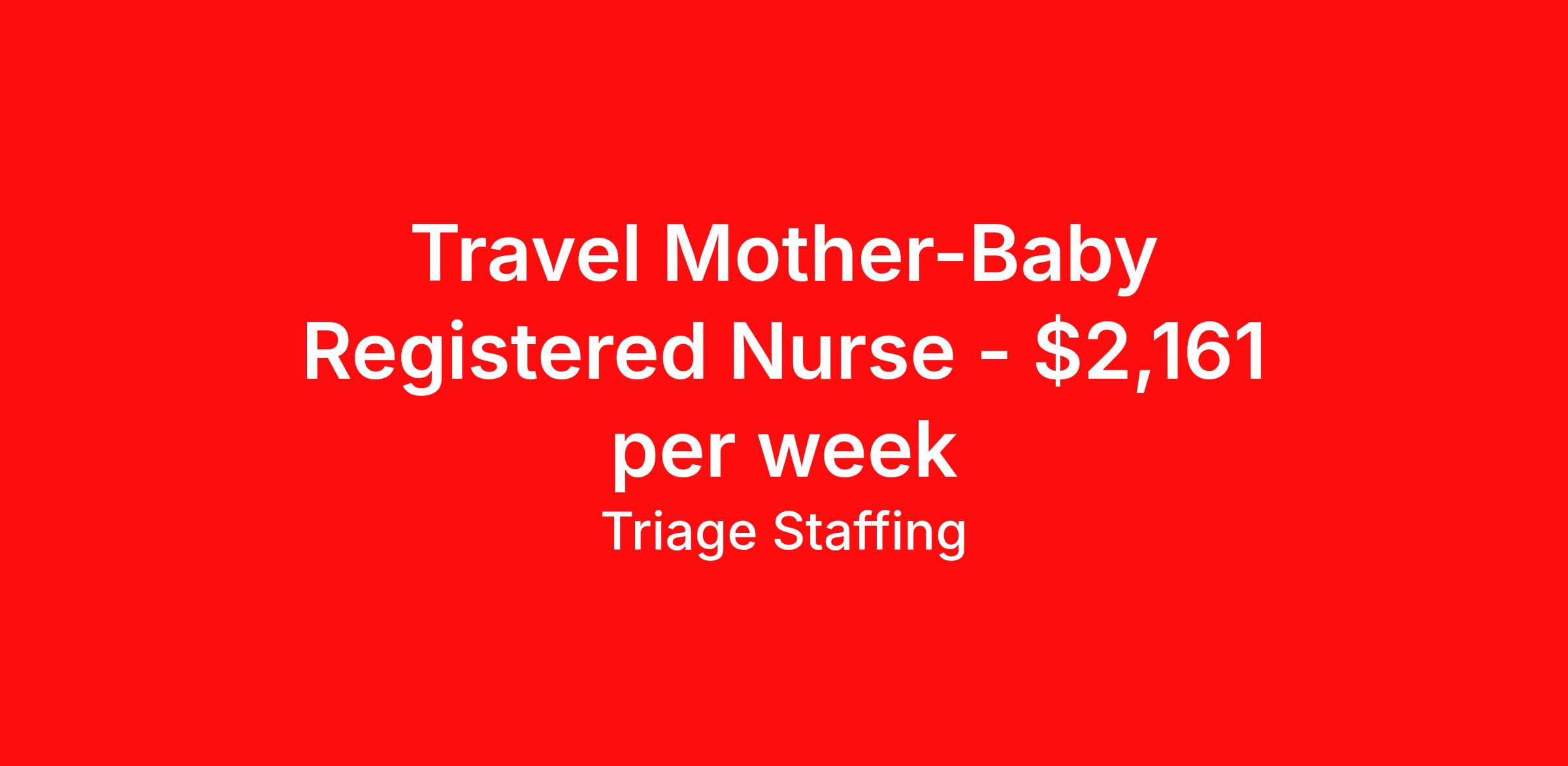 Triage Staffing is seeking a travel nurse RN Maternal - Newborn for a travel nursing job in Oklahoma City, Oklahoma. Job Description & Requirements Specialty: Maternal - Newborn Discipline: RN Start Date: 03/23/2026 Duration: 13 weeks 36 hours per week Shift: 12 hours, nights Employment Type: Travel Travel Nursing: Postpartum/Mother Baby Oklahoma City Location: Oklahoma City Start Date: 3/23/2026 Shift Details: 12H Nights 36 hours per week Length: 13 WEEKS Apply for specific facility details.Mother Baby RN Triage Staffing Job ID XF3WFWHX. Posted job title: Nursing: Postpartum/Mother Baby About Triage Staffing At Triage, we prefer to be real . Real about expectations—both ours and yours. Real about how a decision you make today could affect your tomorrows. Real about how compensation actually works. Real about how great—or grating—your next supervisor may be. Being real allows everyone at Triage to be ready . Ready to serve you with real honesty. So if that gig near the ocean is really no day at the beach, or that third shift comes with a second-class rate, we tell you. So you can be ready, too. We staff all five major divisions of acute care—nursing, lab, radiology, cardiopulmonary and rehab therapy, offering: - Competitive, custom pay packages - One point of contact for both travelers and facilities (per division) - A reliable recruiter who's got your back throughout your entire assignment - In-house compliance and accounting specialists - A clinical liaison team available 24/7 to offer medical and professional support and career development - A mentoring program that is run and managed by actual clinicians—yeah, you read that right - And more (because of course there’s more) Are we the biggest? No. Are we the best? That’s rather subjective, but we’re trying to be. Will we work like hell to get you as close to your idea of heaven as possible? Yes. Yes, we will. Benefits: Day One comprehensive, nationwide insurance plans for health, vision and dental and life—including a HSA option Day One 401(k) program with employer-matching contributions once eligible Facility cancelling protection—your time is money on and off-the-clock Guaranteed hours Weekly paychecks via direct deposit Earned vacation bonuses for time worked Paid holidays Employee assistance program (EAP)—your mental health is important, too Continuing education, certification and licensing reimbursement Workers comp—because accidents happen Top-rated professional liability insurance Company provided housing options Referral bonus—$750 in your pocket after they’ve completed a 13-week assignment