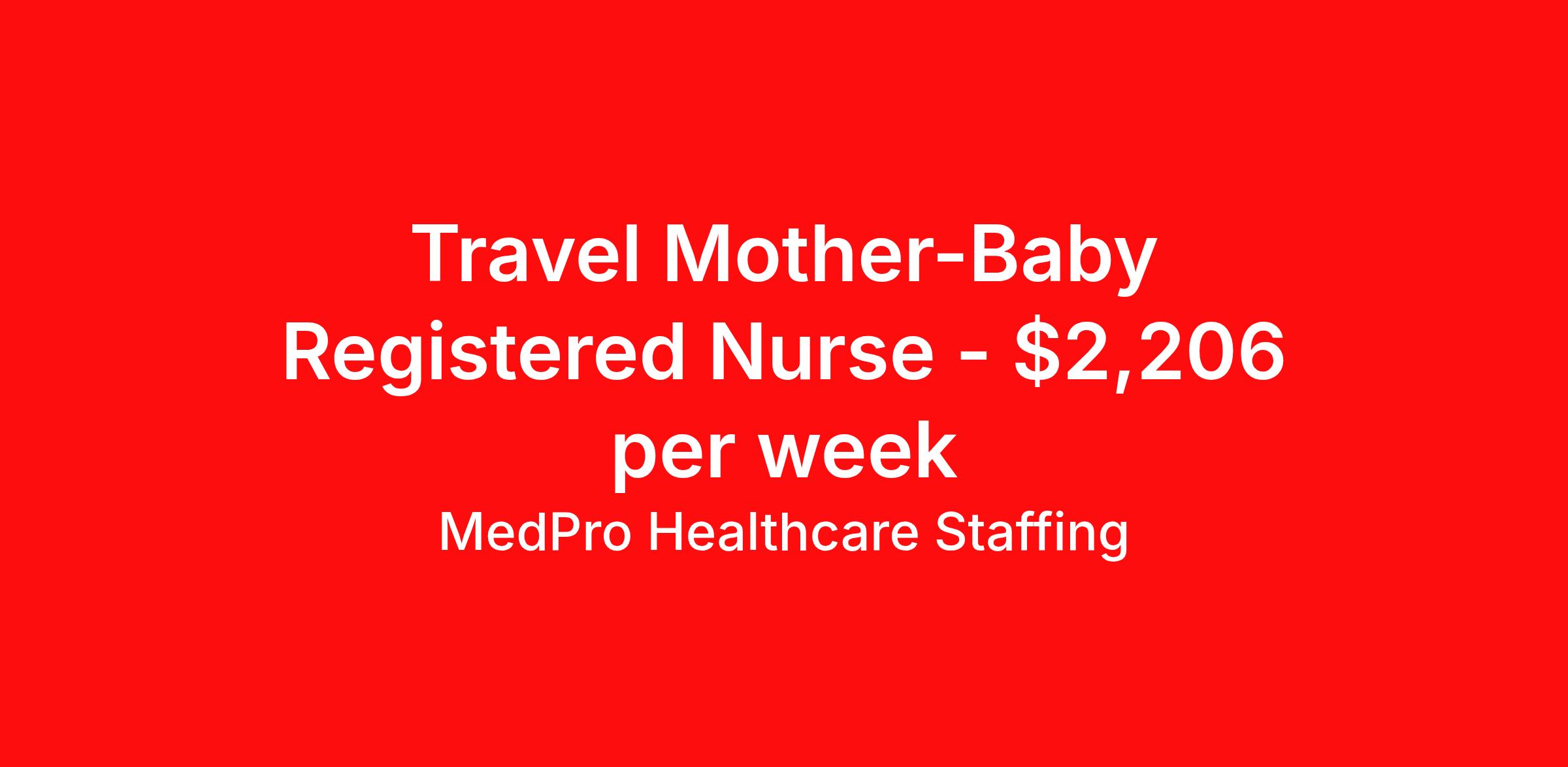 MedPro Healthcare Staffing is seeking a travel nurse RN Maternal - Newborn for a travel nursing job in Oklahoma City, Oklahoma. Job Description & Requirements Specialty: Maternal - Newborn Discipline: RN Start Date: 04/06/2026 Duration: 13 weeks 36 hours per week Shift: 12 hours, nights Employment Type: Travel MedPro Healthcare Staffing , a Joint Commission-certified staffing agency, is seeking a quality Postpartum / Mother-Baby Registered Nurse (RN) for a travel assignment with one of our top healthcare clients. Requirements Active RN License Degree from accredited nursing program BLS, ACLS & NRP Certification Eighteen months of recent experience in an Acute Care Mother/Baby setting Other requirements to be determined by our client facility Benefits Weekly pay and direct deposit Full coverage of all credentialing fees Private housing or housing allowance Group Health insurance for you and your family Company-paid life and disability insurance Travel reimbursement 401(k) matching Unlimited Referral Bonuses up to $1,000 Duties Responsibilities The Postpartum / Mother-baby nurse (RN) educates, and assists new mothers with physical and emotional needs during the post partum period. They perform the dual role of caring for the infants, and educating mothers about care. Responsible for caring for both moms and their newborns after delivery. RN plays a crucial role in the hours following delivery, monitoring mothers and helping to ensure proper recovery. Must recognize postpartum depression and teach new moms how to address emotions. Teach the new parents on how to care, bathe breastfeed and/or bottle-feed the newborn and monitor his or her health. About Agency MedPro Healthcare Staffing is a Joint Commission certified provider of contract staffing services. Since 1983, we have placed nursing and allied travelers in top healthcare facilities nationwide. Join us today for your very own MedPro Experience®. If qualified and interested, please call for immediate consideration. MedPro Staffing is an Equal Opportunity Employer. All applicants will be considered for employment without attention to race, color, religion, national origin, age, sex, disability, marital status or veteran status. Key Words: Nurse, Registered Nurse, RN, Mother Baby, Postpartum, Travel RN, Travel Assignment, Contract Nurse, Agency RN *Weekly payment estimates are intended for informational purposes only and include a gross estimate of hourly wages and reimbursements for meal, incidental, and housing expenses. Your recruiter will confirm your eligibility and provide additional details. MedPro Job ID a0Fcx00000GUBeMEAX. Pay package is based on 12 hour shifts and 36 hours per week (subject to confirmation) with tax-free stipend amount to be determined. Posted job title: Postpartum / Mother-Baby RN Nursing: Mother - Baby. About MedPro Healthcare Staffing At MedPro Healthcare Staffing , we believe no one cares more for caregivers than we do. Our mission is simple: you focus on your patients, and we’ll take care of the rest. As a Joint Commission-certified leader in temporary and contract healthcare staffing since 1983, MedPro has proudly connected nursing and allied travelers with top healthcare facilities across the nation. With thousands of job opportunities available nationwide, we make it easy to find assignments that align with your goals and lifestyle. Our on-staff clinical support team—alongside a compassionate group of experienced recruiters—provides hands-on guidance every step of the way. From Day 1 medical benefits and a 401(k) plan to personalized career support, we’re committed to ensuring every professional we serve feels valued, cared for, and empowered to succeed. Guided by a CEO who is a Registered Nurse, MedPro is built on a foundation of clinical insight and genuine compassion for the caregiving community. Through The MedPro Experience® , we deliver travel assignments that are rewarding, memorable, and designed to help you DREAM big, EXPLORE often, and ACHIEVE greatness. Benefits Day 1 medical, dental, and vision benefits for you and your family Weekly pay and direct deposit Unlimited Referral Bonuses starting at $500 On Staff Clinical Support Team Access to nationwide travel assignments MPX Mobile app -24/7 real-time access to jobs, credentials, assignment details, and more Full coverage of all credentialing fees Private housing or housing allowance Tax Free Per Diems, Housing Stipends and Travel Reimbursements Company-paid life and disability insurance Travel reimbursement 401(k) matching Benefits Weekly pay Referral bonus Employee assistance programs