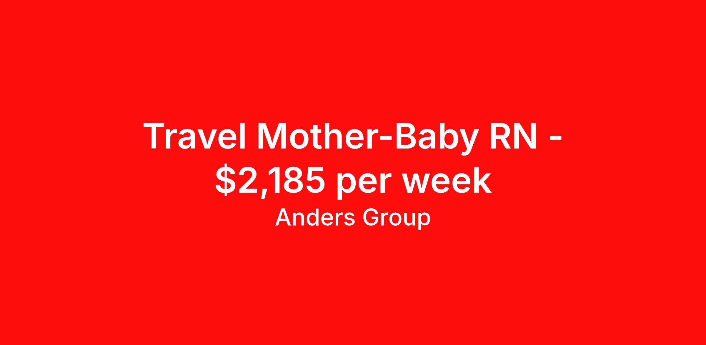 Anders Group is seeking a travel nurse RN Maternal - Newborn for a travel nursing job in Oklahoma City, Oklahoma. Job Description & Requirements Specialty: Maternal - Newborn Discipline: RN Start Date: ASAP Duration: 13 weeks 36 hours per week Shift: 12 hours, days Employment Type: Travel Anders Group Job ID 998686. Pay package is based on 12 hour shifts and 36 hours per week (subject to confirmation) with tax-free stipend amount to be determined. Posted job title: RN Mother - Baby - FS About Anders Group WHY ANDERS? Anders Group is a Joint Commission accredited staffing agency and stands out from other agencies by our commitment to making sure our travelers are given the best customer service. Our team works hard to find the best jobs with the most aggressive rates! Anders Group offers rewarding assignments and competitive compensation packages, nationwide! We offer the following benefits from day one: Health Insurance, Including a Buy-up Option Dental Insurance Vision Insurance Life Insurance 401(k) Licensure Reimbursement Premium Pay Packages CEU Reimbursements Daily Per Diems Travel Reimbursements Rental Car Allowances Continuing Education Resources Referral Bonus And Many More! THE ANDERS DIFFERENCE You're committed to providing exceptional healthcare. We're committed to you. Anders Group was founded by a team of healthcare recruiters who had built strong relationships with healthcare facilities and professionals nationwide. As staffing firms shifted their focus to numbers and margins, these recruiters saw a need for a company to take a different approach to staffing. Anders Group was founded in 2010 to do just that. We focus on individual and facility goals to make quality placements. Great people working with great facilities make for the best placements. Through our focus on providing the best experience to Allied and Nursing health care professionals, Anders Group has grown to be a top staffing firm in Healthcare. We look forward to working with you! Benefits Medical benefits Dental benefits Vision benefits Life insurance 401k retirement plan License and certification reimbursement Continuing Education Referral bonus