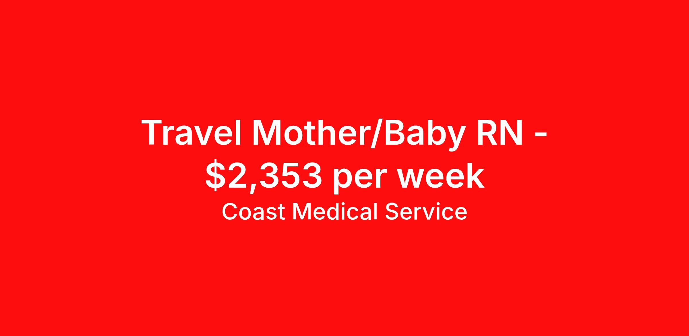 Coast Medical Service is seeking a travel nurse RN Post Partum for a travel nursing job in Morristown, New Jersey. Job Description & Requirements Specialty: Post Partum Discipline: RN Start Date: 04/20/2026 Duration: 13 weeks 36 hours per week Shift: 12 hours, days Employment Type: Travel Coast Medical Service is a nationwide travel nursing & allied healthcare staffing agency dedicated to providing an elite traveler experience for the experienced or first-time traveler. Coast is featured on Blue Pipes' 2023 Best Travel Agencies and named a 2022 Top Rated Healthcare Staffing Firm & 2023 First Half Top Rated Healthcare Staffing Firm by Great Recruiters. Please note that pay rate may differ for locally based candidates. Please apply here or contact a recruiter directly to learn more about this position & the facility, and/or explore others that may be of interest to you. We look forward to speaking with you! Coast Medical Services Job ID 36193813. Pay package is based on 12 hour shifts and 36.0 hours per week (subject to confirmation) with tax-free stipend amount to be determined. Posted job title: RN:Post Partum,07:00:00-19:30:00