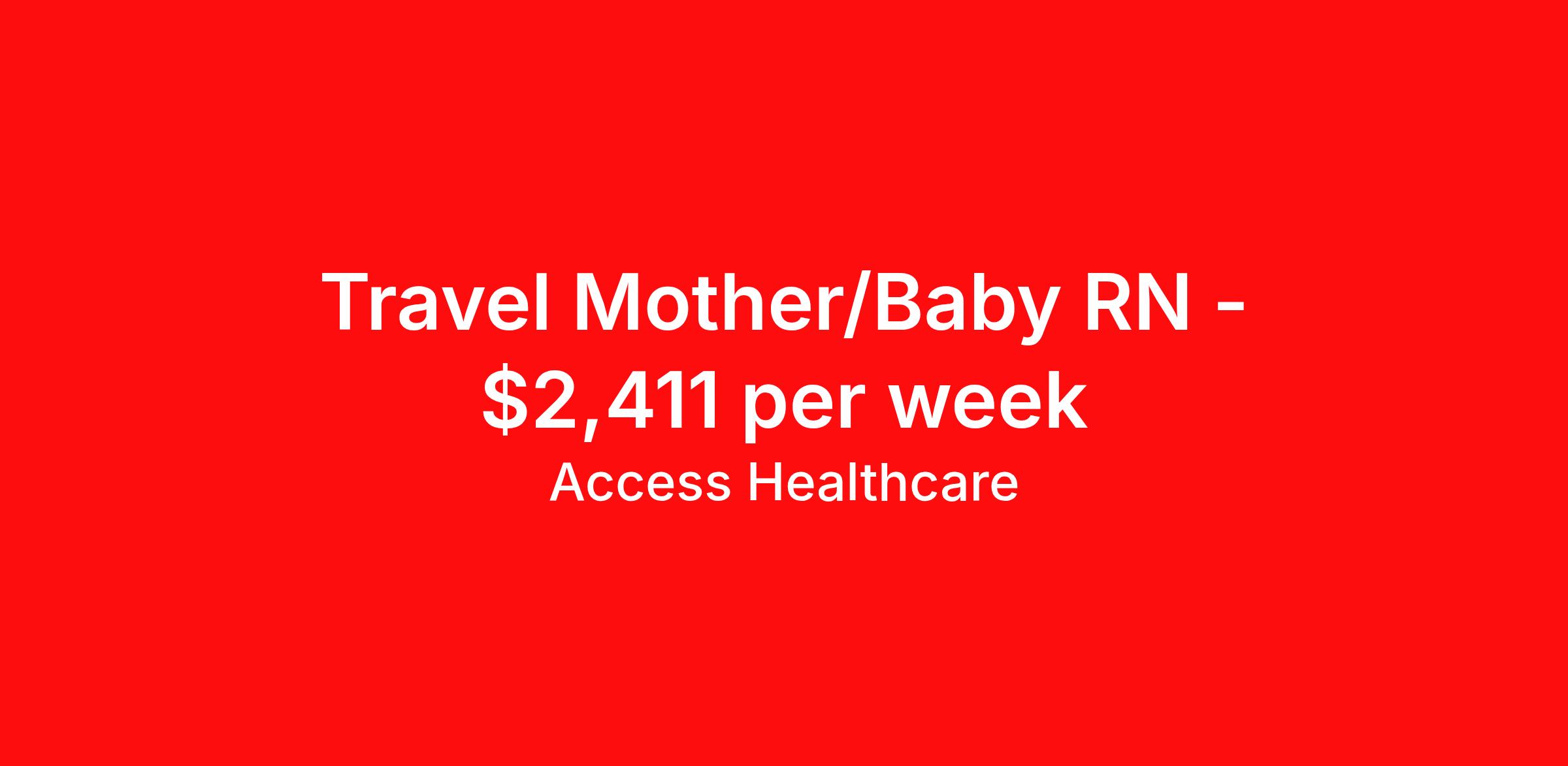 Access Healthcare is seeking a travel nurse RN Maternal - Newborn for a travel nursing job in Morristown, New Jersey. Job Description & Requirements Specialty: Maternal - Newborn Discipline: RN Start Date: 04/20/2026 Duration: 12 weeks 36 hours per week Shift: 12 hours, days Employment Type: Travel Access Healthcare Job ID 76416398. Pay package is based on 12 hour shifts and 36 hours per week (subject to confirmation) with tax-free stipend amount to be determined. About Access Healthcare Access Healthcare aims to provide superior service to our nursing family by providing around the clock support, competitive pay packages and an unmatched benefits package! Unlike other agencies, we offer a true family feel and work with you to find the placement that is right for you. We offer one of the top leading pay packages in the industry and we are ready to get you the money you deserve! Access Healthcare was founded by two travel nurses, Danielle and Diego, who had a dream and a shared vision of creating an agency which all nurses would want to work with. Our passion has led us to where we are today as one of the top 10 agencies in our home state of New Jersey, with access to contracts in all 50 states! We encourage you to join our team and we cannot wait to get to know you!