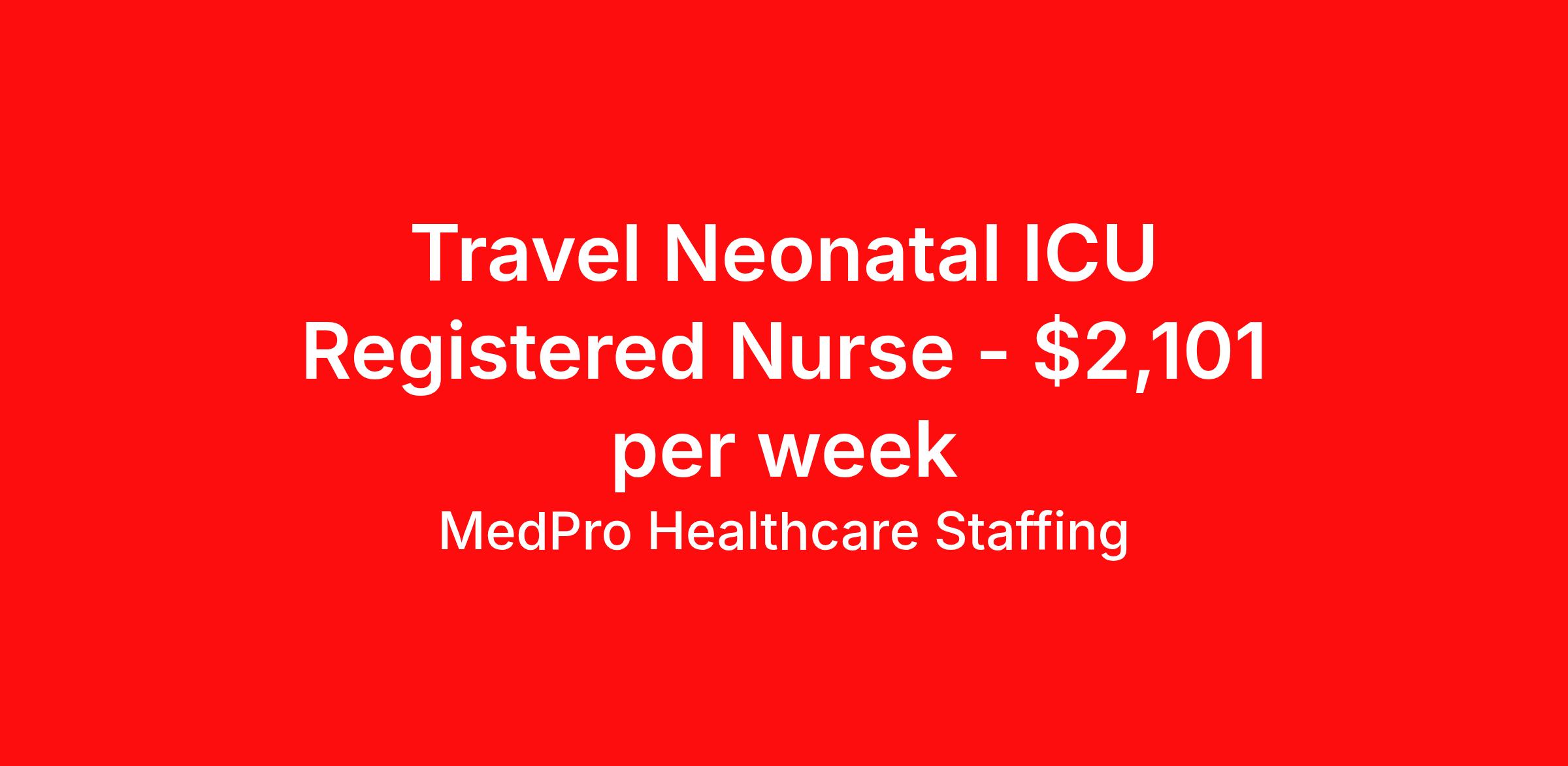MedPro Healthcare Staffing is seeking a travel nurse RN NICU - Neonatal Intensive Care for a travel nursing job in New Lenox, Illinois. Job Description & Requirements Specialty: NICU - Neonatal Intensive Care Discipline: RN Start Date: 04/06/2026 Duration: 13 weeks 36 hours per week Shift: 12 hours, nights Employment Type: Travel MedPro Healthcare Staffing , a Joint Commission-certified staffing agency, is seeking a quality NICU Registered Nurse (RN) for a travel assignment with one of our top healthcare clients. Requirements Eighteen months of recent experience in an Acute Care NICU setting Active RN License BLS, PALS, & NRP Certifications Degree from accredited nursing program Other requirements to be determined by our client facility Benefits Weekly pay and direct deposit Full coverage of all credentialing fees Private housing or housing allowance Group Health insurance for you and your family Company-paid life and disability insurance Travel reimbursement 401(k) matching Unlimited Referral Bonuses up to $1,000 Duties Responsibilities The RN demonstrates the ability to make clinical judgments and utilize critical thinking in an effective and efficient manner with supervision. As well, the NICU Registered Nurse (RN) will perform according to nursing standards and is accountable in managing patient care and assisting others in the management of patient care. Provide direct and specialized care for newborns needing close monitoring due to premature birth, birth defects, infection, or other medical conditions requiring surgery or therapy. Work in the neonatal intensive care unit (NICU) with doctors and other healthcare professionals. Assist in developing and implementing a plan of care for high-risk newborns requiring high-technology care, including ventilators, incubators, or other special equipment or surgery. About Agency MedPro Healthcare Staffing is a Joint Commission certified provider of contract staffing services. Since 1983, we have placed nursing and allied travelers in top healthcare facilities nationwide. Join us today for your very own MedPro Experience®. If qualified and interested, please call for immediate consideration. MedPro Staffing is an Equal Opportunity Employer. All applicants will be considered for employment without attention to race, color, religion, national origin, age, sex, disability, marital status or veteran status. Key Words: Registered Nurse, RN, NICU, Neonatal, Contract Nurse, Travel Nurse, Agency RN, Travel RN, Per Diem, Nursing, Contract, Travel Nursing *Weekly payment estimates are intended for informational purposes only and include a gross estimate of hourly wages and reimbursements for meal, incidental, and housing expenses. Your recruiter will confirm your eligibility and provide additional details. MedPro Job ID a0Fcx00000GxTcfEAF. Pay package is based on 12 hour shifts and 36 hours per week (subject to confirmation) with tax-free stipend amount to be determined. Posted job title: NICU Registered Nurse Nursing: NICU-Neonatal Intensive Care. About MedPro Healthcare Staffing At MedPro Healthcare Staffing , we believe no one cares more for caregivers than we do. Our mission is simple: you focus on your patients, and we’ll take care of the rest. As a Joint Commission-certified leader in temporary and contract healthcare staffing since 1983, MedPro has proudly connected nursing and allied travelers with top healthcare facilities across the nation. With thousands of job opportunities available nationwide, we make it easy to find assignments that align with your goals and lifestyle. Our on-staff clinical support team—alongside a compassionate group of experienced recruiters—provides hands-on guidance every step of the way. From Day 1 medical benefits and a 401(k) plan to personalized career support, we’re committed to ensuring every professional we serve feels valued, cared for, and empowered to succeed. Guided by a CEO who is a Registered Nurse, MedPro is built on a foundation of clinical insight and genuine compassion for the caregiving community. Through The MedPro Experience® , we deliver travel assignments that are rewarding, memorable, and designed to help you DREAM big, EXPLORE often, and ACHIEVE greatness. Benefits Day 1 medical, dental, and vision benefits for you and your family Weekly pay and direct deposit Unlimited Referral Bonuses starting at $500 On Staff Clinical Support Team Access to nationwide travel assignments MPX Mobile app -24/7 real-time access to jobs, credentials, assignment details, and more Full coverage of all credentialing fees Private housing or housing allowance Tax Free Per Diems, Housing Stipends and Travel Reimbursements Company-paid life and disability insurance Travel reimbursement 401(k) matching Benefits Weekly pay Referral bonus Employee assistance programs