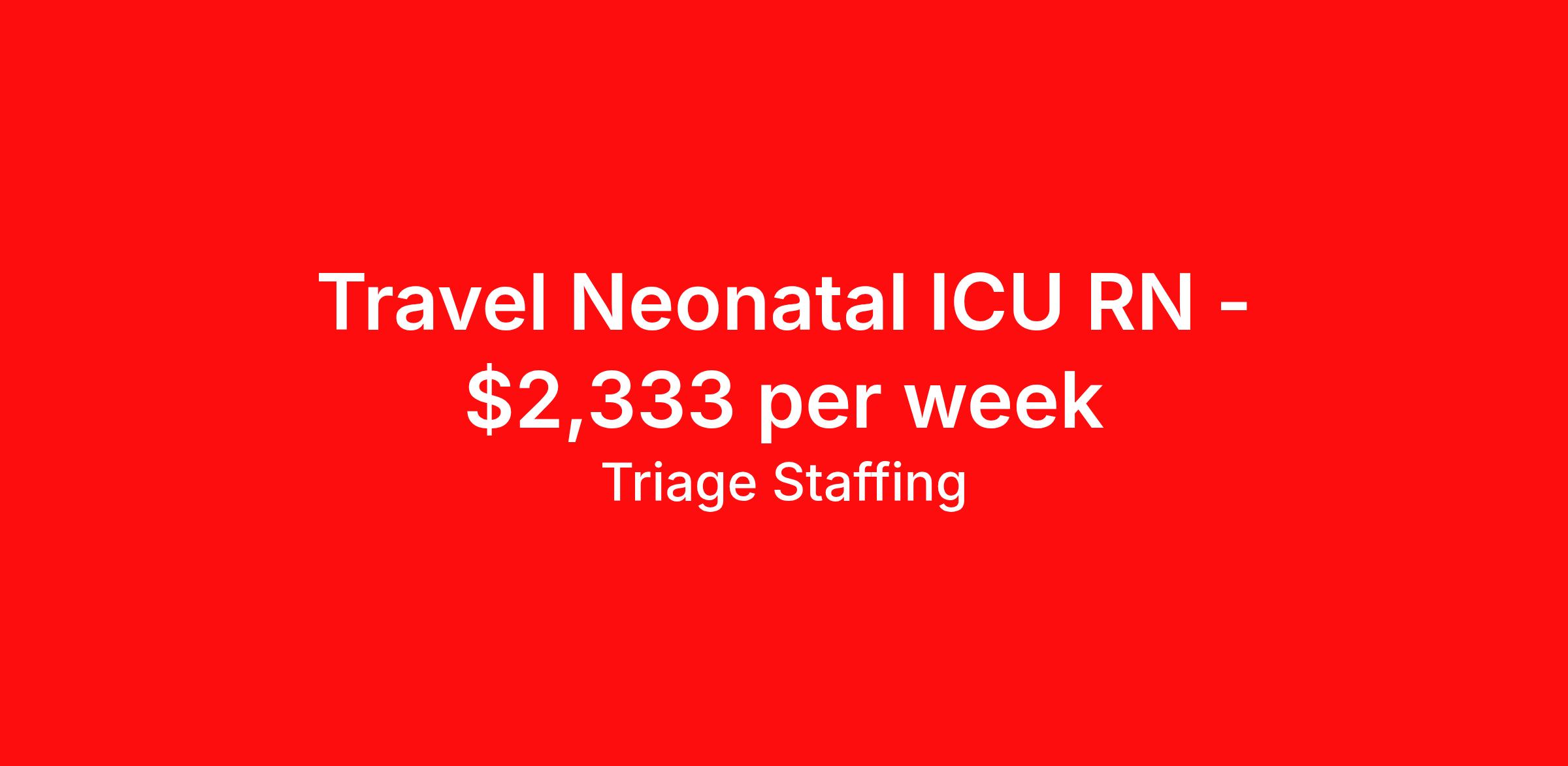 Triage Staffing is seeking a travel nurse RN NICU - Neonatal Intensive Care for a travel nursing job in Oklahoma City, Oklahoma. Job Description & Requirements Specialty: NICU - Neonatal Intensive Care Discipline: RN Start Date: 04/06/2026 Duration: 13 weeks 36 hours per week Shift: 12 hours, nights Employment Type: Travel Travel Nursing: Neonatal Intensive Care Unit Oklahoma City Location: Oklahoma City Start Date: 4/6/2026 Shift Details: 12H Nights 36 hours per week Length: 13 WEEKS Apply for specific facility details.NICU RN Triage Staffing Job ID FTCRJLWF. Posted job title: Nursing: Neonatal Intensive Care Unit About Triage Staffing At Triage, we prefer to be real . Real about expectations—both ours and yours. Real about how a decision you make today could affect your tomorrows. Real about how compensation actually works. Real about how great—or grating—your next supervisor may be. Being real allows everyone at Triage to be ready . Ready to serve you with real honesty. So if that gig near the ocean is really no day at the beach, or that third shift comes with a second-class rate, we tell you. So you can be ready, too. We staff all five major divisions of acute care—nursing, lab, radiology, cardiopulmonary and rehab therapy, offering: - Competitive, custom pay packages - One point of contact for both travelers and facilities (per division) - A reliable recruiter who's got your back throughout your entire assignment - In-house compliance and accounting specialists - A clinical liaison team available 24/7 to offer medical and professional support and career development - A mentoring program that is run and managed by actual clinicians—yeah, you read that right - And more (because of course there’s more) Are we the biggest? No. Are we the best? That’s rather subjective, but we’re trying to be. Will we work like hell to get you as close to your idea of heaven as possible? Yes. Yes, we will. Benefits: Day One comprehensive, nationwide insurance plans for health, vision and dental and life—including a HSA option Day One 401(k) program with employer-matching contributions once eligible Facility cancelling protection—your time is money on and off-the-clock Guaranteed hours Weekly paychecks via direct deposit Earned vacation bonuses for time worked Paid holidays Employee assistance program (EAP)—your mental health is important, too Continuing education, certification and licensing reimbursement Workers comp—because accidents happen Top-rated professional liability insurance Company provided housing options Referral bonus—$750 in your pocket after they’ve completed a 13-week assignment