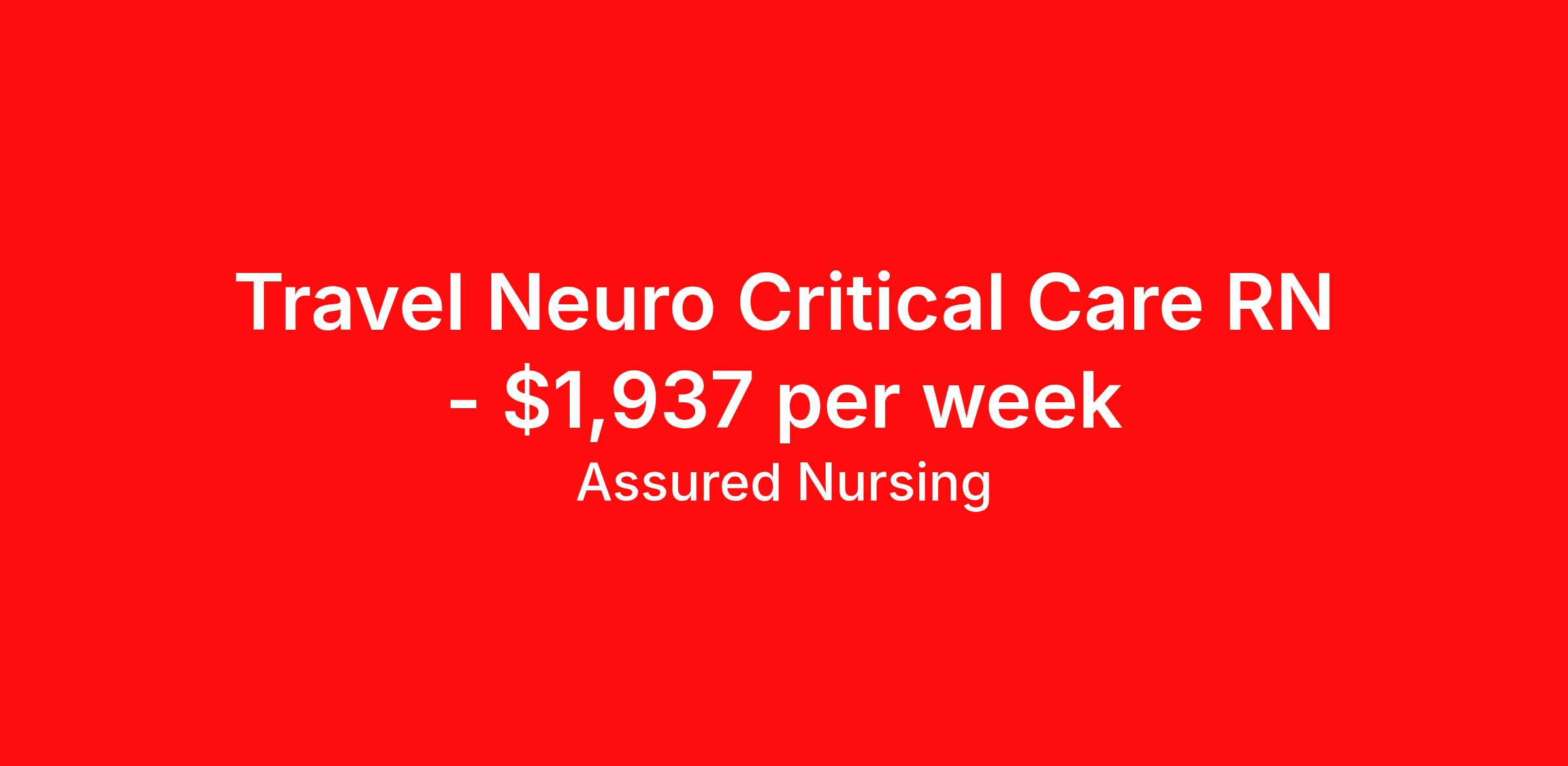 Assured Nursing is seeking a travel nurse RN ICU - Intensive Care Unit for a travel nursing job in Indianapolis, Indiana. Job Description & Requirements Specialty: ICU - Intensive Care Unit Discipline: RN Start Date: ASAP Duration: 13 weeks 36 hours per week Shift: 12 hours, nights Employment Type: Travel Assured Nursing is currently seeking a RN for a contract position in Indianapolis Indiana . This is a 7p-7:30a, 19:00:00-07:30:00, 12.00-3 position in the Franciscan Health (811) . The ideal candidate will possess a current state license as a RN and have at least 2 years of recent experience as a Trauma/Neuro ICU RN . Assured Nursing Job ID 35700618. Pay package is based on 12 hour shifts and 36.0 hours per week (subject to confirmation) with tax-free stipend amount to be determined. Posted job title: RN:Trauma/Neuro ICU,19:00:00-07:30:00 Benefits Weekly pay Holiday Pay 401k retirement plan Referral bonus Medical benefits Dental benefits Vision benefits