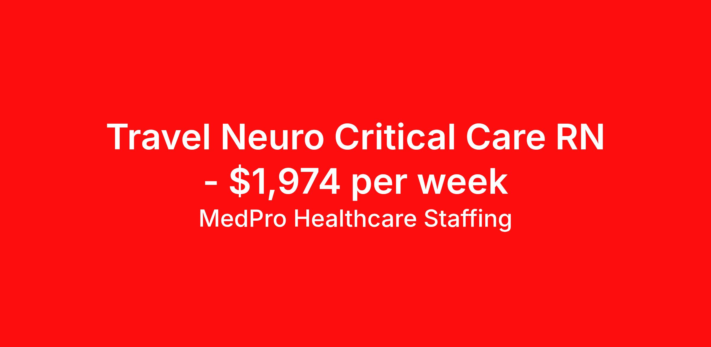 MedPro Healthcare Staffing is seeking a travel nurse RN ICU - Intensive Care Unit for a travel nursing job in Indianapolis, Indiana. Job Description & Requirements Specialty: ICU - Intensive Care Unit Discipline: RN Start Date: 04/06/2026 Duration: 13 weeks 36 hours per week Shift: 12 hours, nights Employment Type: Travel MedPro Healthcare Staffing , a Joint Commission-certified staffing agency, is seeking a quality ICU/CCU Registered Nurse for a travel assignment with one of our top healthcare clients. Requirements Active RN License Degree from accredited nursing program BLS & ACLS Certification Eighteen months of recent experience in an Acute Care ICU setting Other requirements to be determined by our client facility Benefits Weekly pay and direct deposit Full coverage of all credentialing fees Private housing or housing allowance Group Health insurance for you and your family Company-paid life and disability insurance Travel reimbursement 401(k) matching Unlimited Referral Bonuses up to $1,000 Duties Responsibilities ICU/Critical Care Nurse (RN) possesses the skills needed to manage the care of adult patients experiencing life-threatening problems requiring complex assessment, high intensity therapies, and interventions. Provide patient care as well as education and support to the patient's family. Ensure proper functioning of life support equipment such as ventilators and feeding tubes. Observe the patient's heart rate, blood pressure and respiration for signs of distress. Administer medication, IVs, and insert catheters as needed. Meticulous documentation of medication administration. Assist in emergency nursing procedures necessary for prompt control of changes in patient’s physical condition. Perform cardiopulmonary resuscitation accurately and effectively. About Agency MedPro Healthcare Staffing is a Joint Commission certified provider of contract staffing services. Since 1983, we have placed nursing and allied travelers in top healthcare facilities nationwide. Join us today for your very own MedPro Experience®. If qualified and interested, please call for immediate consideration. MedPro Staffing is an Equal Opportunity Employer. All applicants will be considered for employment without attention to race, color, religion, national origin, age, sex, disability, marital status or veteran status. Key Words: Intensive Care Unit, Nurse, Registered Nurse, RN-ICU, Critical Care Unit, Critical Care Nurse, Intensive Care Nurse, RN-CCU, Travel Nurse, Agency Nurse, Contract Nurse, Travel Contract, ACLS, EKG, RN, Registered Nurse, ICU, CCU, RN-ICU, RN-CCU, MICU, SICU, Advanced Life Support, CPR, BLS, Travel Nursing *Weekly payment estimates are intended for informational purposes only and include a gross estimate of hourly wages and reimbursements for meal, incidental, and housing expenses. Your recruiter will confirm your eligibility and provide additional details. MedPro Job ID a0Fcx00000ChUwnEAF. Pay package is based on 12 hour shifts and 36 hours per week (subject to confirmation) with tax-free stipend amount to be determined. Posted job title: ICU/CCU Registered Nurse Nursing: ICU - Intensive Care. About MedPro Healthcare Staffing At MedPro Healthcare Staffing , we believe no one cares more for caregivers than we do. Our mission is simple: you focus on your patients, and we’ll take care of the rest. As a Joint Commission-certified leader in temporary and contract healthcare staffing since 1983, MedPro has proudly connected nursing and allied travelers with top healthcare facilities across the nation. With thousands of job opportunities available nationwide, we make it easy to find assignments that align with your goals and lifestyle. Our on-staff clinical support team—alongside a compassionate group of experienced recruiters—provides hands-on guidance every step of the way. From Day 1 medical benefits and a 401(k) plan to personalized career support, we’re committed to ensuring every professional we serve feels valued, cared for, and empowered to succeed. Guided by a CEO who is a Registered Nurse, MedPro is built on a foundation of clinical insight and genuine compassion for the caregiving community. Through The MedPro Experience® , we deliver travel assignments that are rewarding, memorable, and designed to help you DREAM big, EXPLORE often, and ACHIEVE greatness. Benefits Day 1 medical, dental, and vision benefits for you and your family Weekly pay and direct deposit Unlimited Referral Bonuses starting at $500 On Staff Clinical Support Team Access to nationwide travel assignments MPX Mobile app -24/7 real-time access to jobs, credentials, assignment details, and more Full coverage of all credentialing fees Private housing or housing allowance Tax Free Per Diems, Housing Stipends and Travel Reimbursements Company-paid life and disability insurance Travel reimbursement 401(k) matching Benefits Weekly pay Referral bonus Employee assistance programs