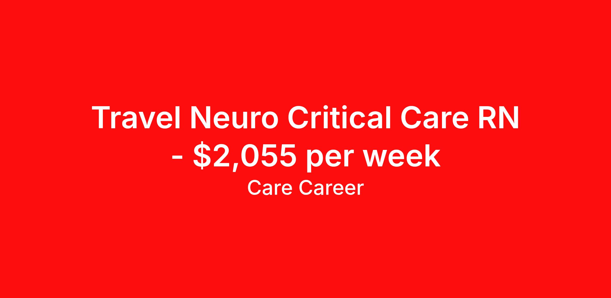 Travel Neuro Critical Care RN - $2,055 per week