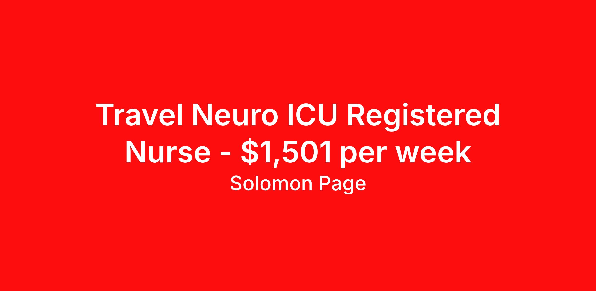 Travel Neuro ICU Registered Nurse - $1,501 per week