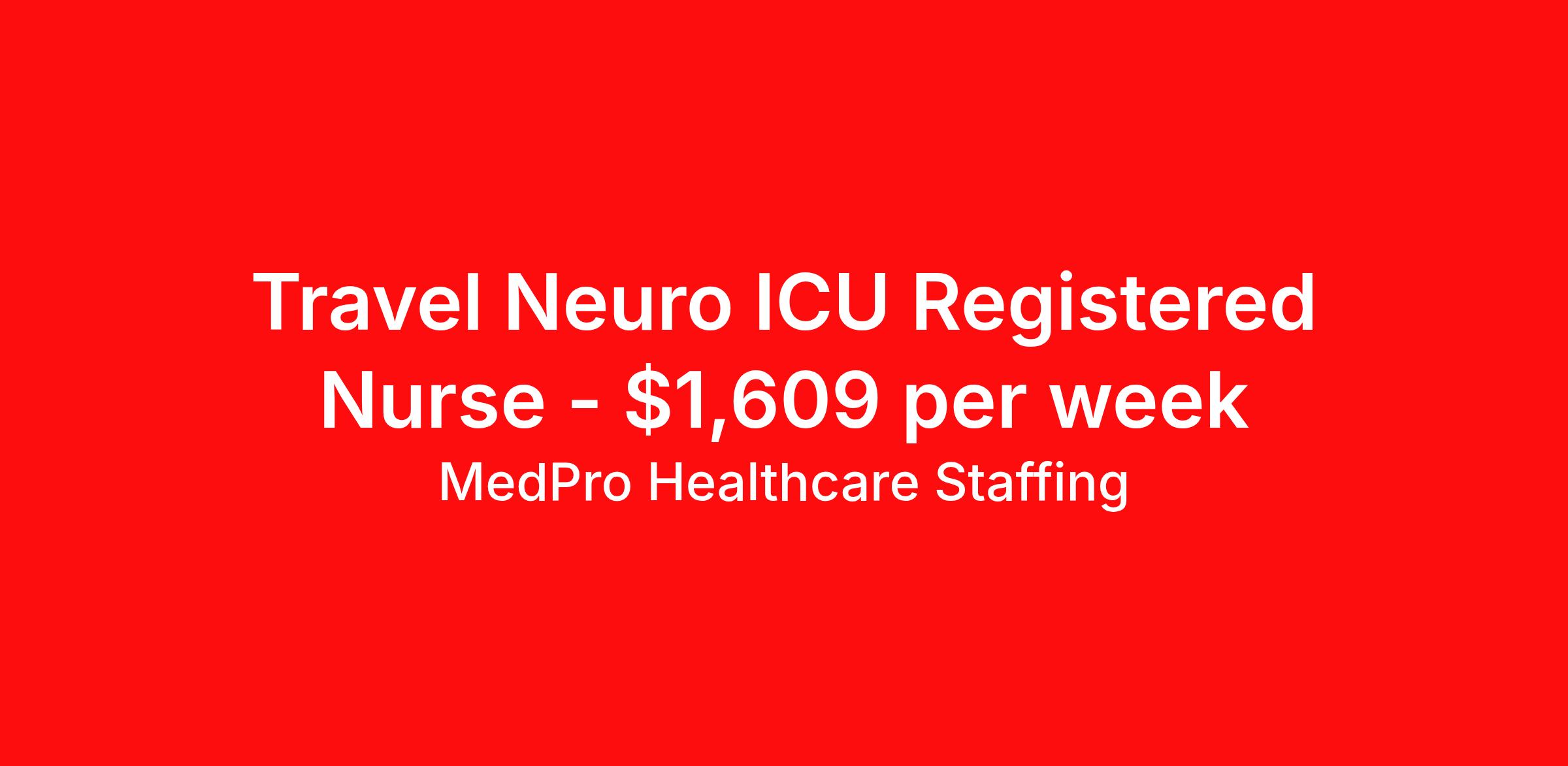 MedPro Healthcare Staffing is seeking a travel nurse RN ICU - Intensive Care Unit for a travel nursing job in Dallas, Texas. Job Description & Requirements Specialty: ICU - Intensive Care Unit Discipline: RN Start Date: 04/06/2026 Duration: 13 weeks 36 hours per week Shift: 12 hours, nights Employment Type: Travel MedPro Healthcare Staffing , a Joint Commission-certified staffing agency, is seeking a quality ICU/CCU Registered Nurse for a travel assignment with one of our top healthcare clients. Requirements Active RN License Degree from accredited nursing program BLS & ACLS Certification Eighteen months of recent experience in an Acute Care ICU setting Other requirements to be determined by our client facility Benefits Weekly pay and direct deposit Full coverage of all credentialing fees Private housing or housing allowance Group Health insurance for you and your family Company-paid life and disability insurance Travel reimbursement 401(k) matching Unlimited Referral Bonuses up to $1,000 Duties Responsibilities ICU/Critical Care Nurse (RN) possesses the skills needed to manage the care of adult patients experiencing life-threatening problems requiring complex assessment, high intensity therapies, and interventions. Provide patient care as well as education and support to the patient's family. Ensure proper functioning of life support equipment such as ventilators and feeding tubes. Observe the patient's heart rate, blood pressure and respiration for signs of distress. Administer medication, IVs, and insert catheters as needed. Meticulous documentation of medication administration. Assist in emergency nursing procedures necessary for prompt control of changes in patient’s physical condition. Perform cardiopulmonary resuscitation accurately and effectively. About Agency MedPro Healthcare Staffing is a Joint Commission certified provider of contract staffing services. Since 1983, we have placed nursing and allied travelers in top healthcare facilities nationwide. Join us today for your very own MedPro Experience®. If qualified and interested, please call for immediate consideration. MedPro Staffing is an Equal Opportunity Employer. All applicants will be considered for employment without attention to race, color, religion, national origin, age, sex, disability, marital status or veteran status. Key Words: Intensive Care Unit, Nurse, Registered Nurse, RN-ICU, Critical Care Unit, Critical Care Nurse, Intensive Care Nurse, RN-CCU, Travel Nurse, Agency Nurse, Contract Nurse, Travel Contract, ACLS, EKG, RN, Registered Nurse, ICU, CCU, RN-ICU, RN-CCU, MICU, SICU, Advanced Life Support, CPR, BLS, Travel Nursing *Weekly payment estimates are intended for informational purposes only and include a gross estimate of hourly wages and reimbursements for meal, incidental, and housing expenses. Your recruiter will confirm your eligibility and provide additional details. MedPro Job ID a0Fcx000008KscLEAS. Pay package is based on 12 hour shifts and 36 hours per week (subject to confirmation) with tax-free stipend amount to be determined. Posted job title: ICU/CCU Registered Nurse Nursing: ICU - Intensive Care. About MedPro Healthcare Staffing At MedPro Healthcare Staffing , we believe no one cares more for caregivers than we do. Our mission is simple: you focus on your patients, and we’ll take care of the rest. As a Joint Commission-certified leader in temporary and contract healthcare staffing since 1983, MedPro has proudly connected nursing and allied travelers with top healthcare facilities across the nation. With thousands of job opportunities available nationwide, we make it easy to find assignments that align with your goals and lifestyle. Our on-staff clinical support team—alongside a compassionate group of experienced recruiters—provides hands-on guidance every step of the way. From Day 1 medical benefits and a 401(k) plan to personalized career support, we’re committed to ensuring every professional we serve feels valued, cared for, and empowered to succeed. Guided by a CEO who is a Registered Nurse, MedPro is built on a foundation of clinical insight and genuine compassion for the caregiving community. Through The MedPro Experience® , we deliver travel assignments that are rewarding, memorable, and designed to help you DREAM big, EXPLORE often, and ACHIEVE greatness. Benefits Day 1 medical, dental, and vision benefits for you and your family Weekly pay and direct deposit Unlimited Referral Bonuses starting at $500 On Staff Clinical Support Team Access to nationwide travel assignments MPX Mobile app -24/7 real-time access to jobs, credentials, assignment details, and more Full coverage of all credentialing fees Private housing or housing allowance Tax Free Per Diems, Housing Stipends and Travel Reimbursements Company-paid life and disability insurance Travel reimbursement 401(k) matching Benefits Weekly pay Referral bonus Employee assistance programs