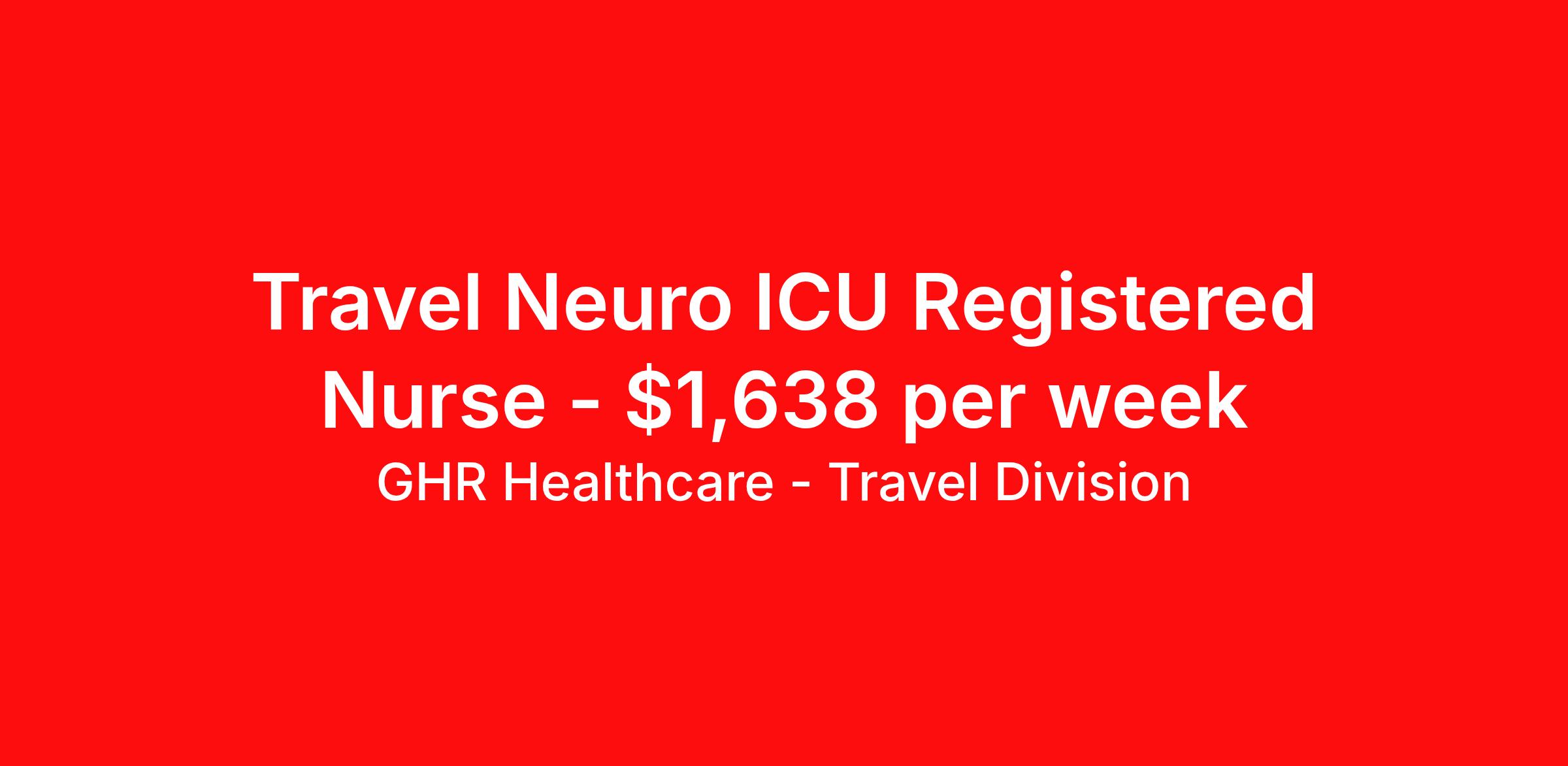 GHR Healthcare - Travel Division is seeking a travel nurse RN ICU - Intensive Care Unit for a travel nursing job in Dallas, Texas. Job Description & Requirements Specialty: ICU - Intensive Care Unit Discipline: RN Start Date: ASAP Duration: 13 weeks 36 hours per week Shift: 12 hours Employment Type: Travel GHR Healthcare - Travel Division Job ID 73849027. Pay package is based on 12 hour shifts and 36 hours per week (subject to confirmation) with tax-free stipend amount to be determined. About GHR Healthcare - Travel Division For over 30 years, GHR Healthcare has been the bridge between healthcare professionals and the facilities that need them nationwide. We're committed to uncovering your ideal fit, supported by GHR's dedication to competitive compensation, transparent communication, and a devoted team that genuinely cares about your career journey. You can trust us to stand by your side as your advocate, confidante, and partner in advancing your career. At GHR, care and consideration are at the heart of everything we do. Visit ghrhealthcare.com to learn more.