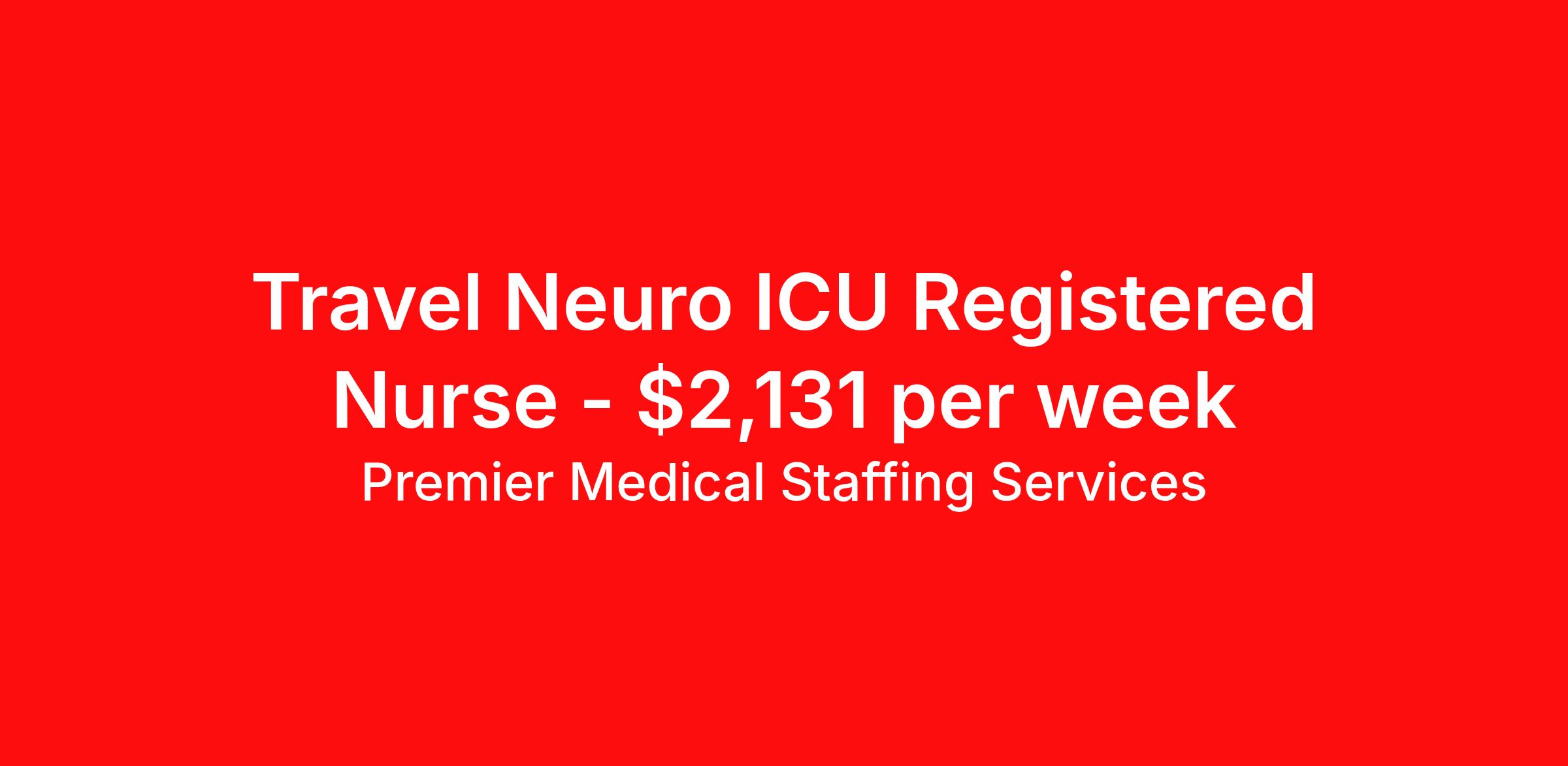 Premier Medical Staffing Services is seeking a travel nurse RN ICU - Intensive Care Unit for a travel nursing job in Memphis, Tennessee. Job Description & Requirements Specialty: ICU - Intensive Care Unit Discipline: RN Start Date: 04/20/2026 Duration: 13 weeks 36 hours per week Shift: 12 hours Employment Type: Travel Premier Medical Staffing Job ID 621815. Pay package is based on 12 hour shifts and 36 hours per week (subject to confirmation) with tax-free stipend amount to be determined. Posted job title: RN ICU About Premier Medical Staffing Services Premier Medical Staffing Services, LLC is a nationally expanding healthcare staffing firm for healthcare professionals and companies. We understand our clients’ need for highly qualified, expertly trained medical professionals and are passionate about helping clinicians find employment opportunities that fit their personality and needs. Able to accommodate the ever-changing needs of the healthcare landscape, we offer per-diem, contract and direct hire placements to support the unique needs of each industry sector. Premier Medical Staffing Services is Joint Commission Certified, a Military Spouse Employment Partner and is certified as a Women’s Business Enterprise. We are proudly nurse owned.