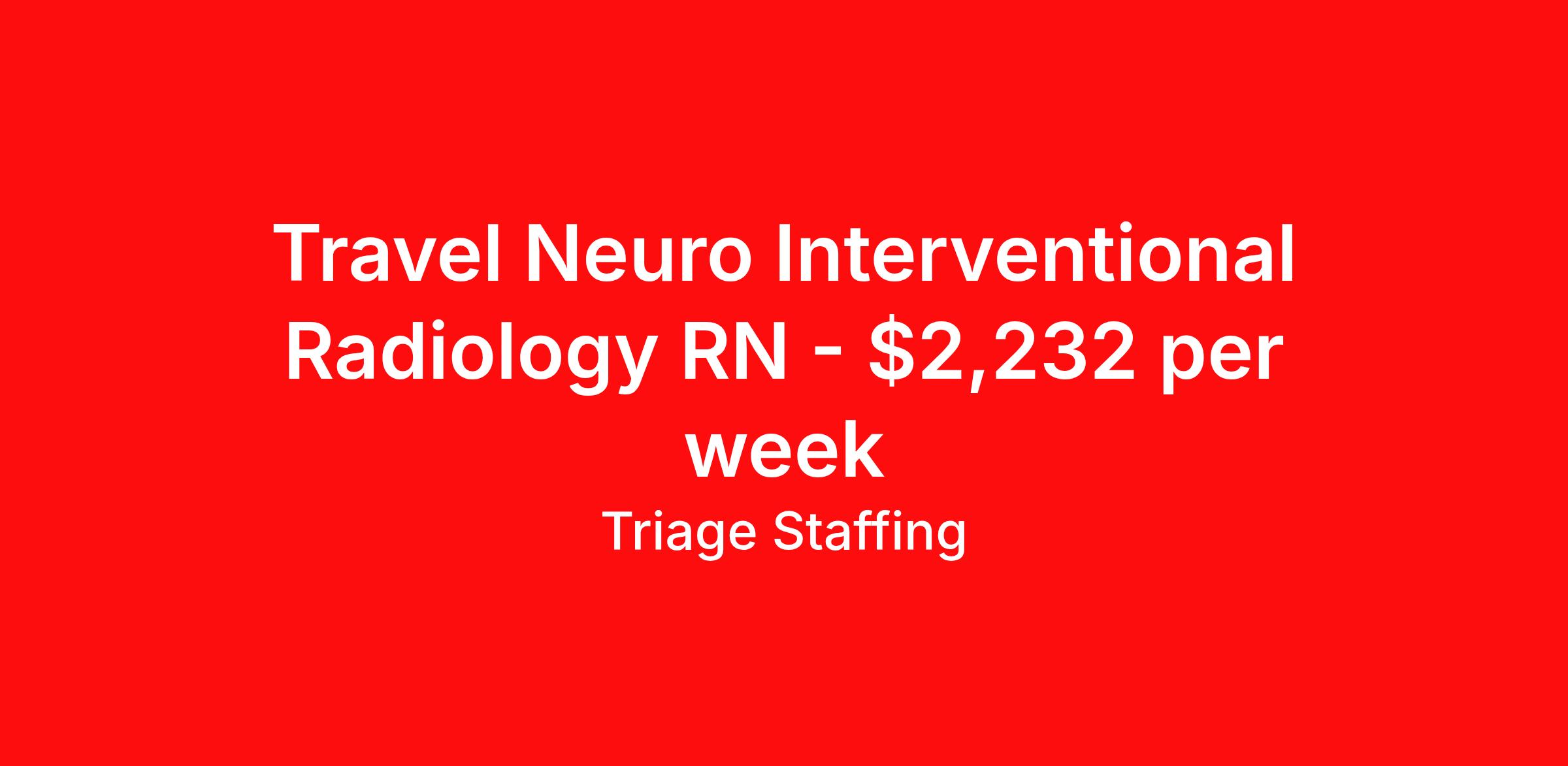 Triage Staffing is seeking a travel nurse RN Interventional Radiology for a travel nursing job in Corpus Christi, Texas. Job Description & Requirements Specialty: Interventional Radiology Discipline: RN Start Date: ASAP Duration: 13 weeks 40 hours per week Shift: 8 hours, days Employment Type: Travel Travel Radiology: Interventional Radiology Tech Corpus Christi Location: Corpus Christi Start Date: 9/1/2025 Shift Details: 8H Days 40 hours per week Length: 13 WEEKS Apply for specific facility details.IR/Specials Tech Triage Staffing Job ID QP33HL97. Posted job title: Radiology: Interventional Radiology Tech About Triage Staffing At Triage, we prefer to be real . Real about expectations—both ours and yours. Real about how a decision you make today could affect your tomorrows. Real about how compensation actually works. Real about how great—or grating—your next supervisor may be. Being real allows everyone at Triage to be ready . Ready to serve you with real honesty. So if that gig near the ocean is really no day at the beach, or that third shift comes with a second-class rate, we tell you. So you can be ready, too. We staff all five major divisions of acute care—nursing, lab, radiology, cardiopulmonary and rehab therapy, offering: - Competitive, custom pay packages - One point of contact for both travelers and facilities (per division) - A reliable recruiter who's got your back throughout your entire assignment - In-house compliance and accounting specialists - A clinical liaison team available 24/7 to offer medical and professional support and career development - A mentoring program that is run and managed by actual clinicians—yeah, you read that right - And more (because of course there’s more) Are we the biggest? No. Are we the best? That’s rather subjective, but we’re trying to be. Will we work like hell to get you as close to your idea of heaven as possible? Yes. Yes, we will. Benefits: Day One comprehensive, nationwide insurance plans for health, vision and dental and life—including a HSA option Day One 401(k) program with employer-matching contributions once eligible Facility cancelling protection—your time is money on and off-the-clock Guaranteed hours Weekly paychecks via direct deposit Earned vacation bonuses for time worked Paid holidays Employee assistance program (EAP)—your mental health is important, too Continuing education, certification and licensing reimbursement Workers comp—because accidents happen Top-rated professional liability insurance Company provided housing options Referral bonus—$750 in your pocket after they’ve completed a 13-week assignment