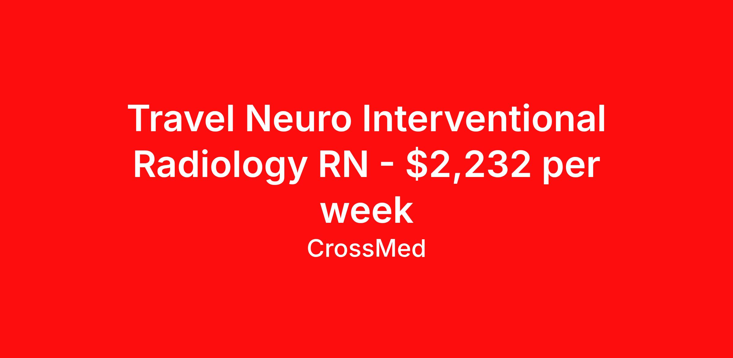 Travel Neuro Interventional Radiology RN - $2,232 per week