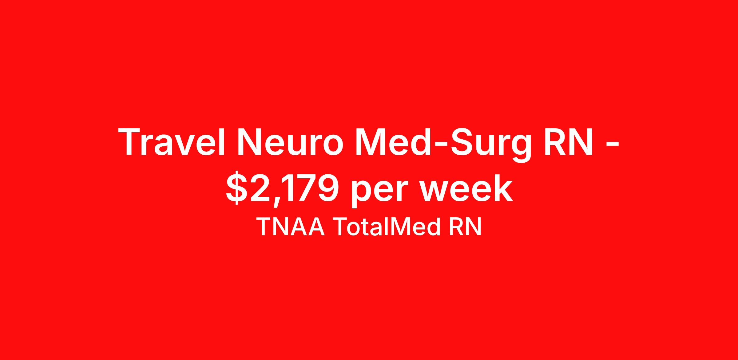 TNAA TotalMed RN is seeking a travel nurse RN Med Surg for a travel nursing job in Peoria, Illinois. Job Description & Requirements Specialty: Med Surg Discipline: RN Start Date: 03/30/2026 Duration: 13 weeks 36 hours per week Shift: 12 hours, nights Employment Type: Travel We're looking for Medical Surgical RNs for an immediate travel nurse opening in Peoria, IL. The right RN should have 1-2 years recent acute care experience. Read below for more requirements. As a MedSurg RN, you will conduct patient assessments and prioritize data collection based on patients' immediate conditions or needs. MedSurg RNs perform ongoing assessments and appropriate treatments as ordered by a physician. Documenting patient findings and providing education and support to patients' families is essential to this travel nurse position. As a Medical Surgical Travel Nurse, you should be prepared to perform the following tasks: Provide bedside care for a variety of patients, including pre- and post-op patients. Prepare, administer and record prescribed medication, reporting any adverse reactions to treatment. Change dressings, insert catheters and start IVs. Prepares equipment and aids physician during examination and treatment of patient. Educates patients on surgical procedures. Participates in discharge planning and initiates patient education plan as prescribed by physician. Medical Surgical Travel Nurses should be able to stand and walk for long periods of time, as well as bend, lean and stoop without difficulty. RNs should be able to easily lift 20 pounds. Moving or lifting of patients may require lifting of up to 50 pounds at times. RNs will work in a fast-paced environment treating patients that may be confused, agitated, and/or uncooperative. Requirements*: BLS, NIH, 1 Year * Additional certifications may be required before beginning an assignment. TotalMed Travel Job ID 1394592. Pay package is based on 12 hour shifts and 36 hours per week (subject to confirmation) with tax-free stipend amount to be determined. Posted job title: Medical/Surgical - MedSurg RN - Travel Nurse About TNAA TotalMed RN TotalMed is a Top Ten, travel nursing and healthcare staffing agency with the mission of igniting purpose in healthcare. The organization staffs nurses, therapists, pharmacists, and other clinicians of all specialties in all 50 states. They offer local and travel jobs and match caregivers with the right organization to assist both facilities and patients. As an organization, they focus on putting highly-skilled staff into facilities to ensure adequate staffing for a better patient experience. TotalMed specializes in recruiting and placing healthcare professionals in travel, PRN, and permanent positions across the country in Nursing and Allied Health. Throughout 2020, the organization filled roles at even the most short-staffed facilities during the most challenging time in healthcare. By matching the right travel healthcare professional with the right organization, TotalMed continues to offer a lifeline to facilities and their patients. Benefits Weekly pay Guaranteed Hours Continuing Education 401k retirement plan Sick pay Wellness and fitness programs Referral bonus Employee assistance programs Medical benefits Dental benefits Vision benefits Benefits start day 1