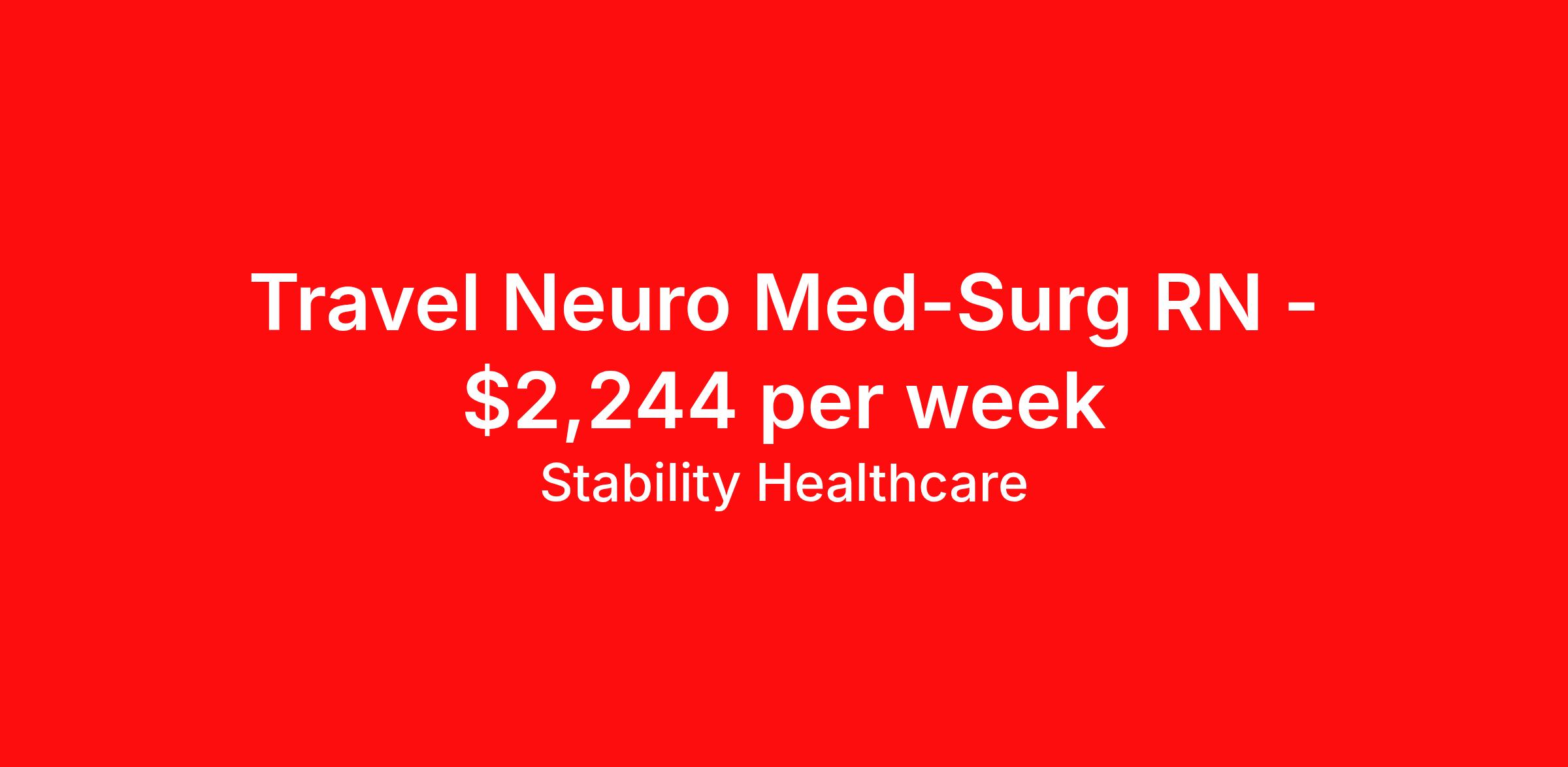 Stability Healthcare is seeking a travel nurse RN Med Surg for a travel nursing job in Peoria, Illinois. Job Description & Requirements Specialty: Med Surg Discipline: RN Duration: 13 weeks 36 hours per week Shift: 12 hours, nights Employment Type: Travel Stability Healthcare is looking for a Med-Surg RN contract position in Peoria, IL. The majority of hospitalized patients are admitted to M/S either directly or after surgery. M/S is also where patients who have been in critical care (ICU) are transferred when they no longer need critical care but still require nursing care. *$600 travel bonus *Day 1 health insurance with United Healthcare *PTO plan start accruing on day 1, use during contract or cash out at the end! *Guaranteed stipend if facility calls you off *Extra hour bonus earn an additional hourly bonus for working over your weekly contracted hours Stability Job ID 827466. Pay package is based on 12 hour shifts and 36 hours per week (subject to confirmation) with tax-free stipend amount to be determined. Posted job title: Med-Surg About Stability Healthcare Stability Healthcare was founded in 2009, with the mission of becoming the best Travel Nursing Agency in California. We have been rated one of the top travel nursing agencies and offer our nurses the highest paying travel nursing jobs available. We have access to the best travel assignments from 1000’s of facilities. You can start the year off in sunny California, spend the Spring in the Colorado Rockies, enjoy the Summer in the Mid-West, experience the change of seasons in Boston and New York, and hit the beaches of Florida in the winter. Our Nurses work in the best hospitals and health systems in the country. Benefits Guaranteed Hours Benefits start day 1