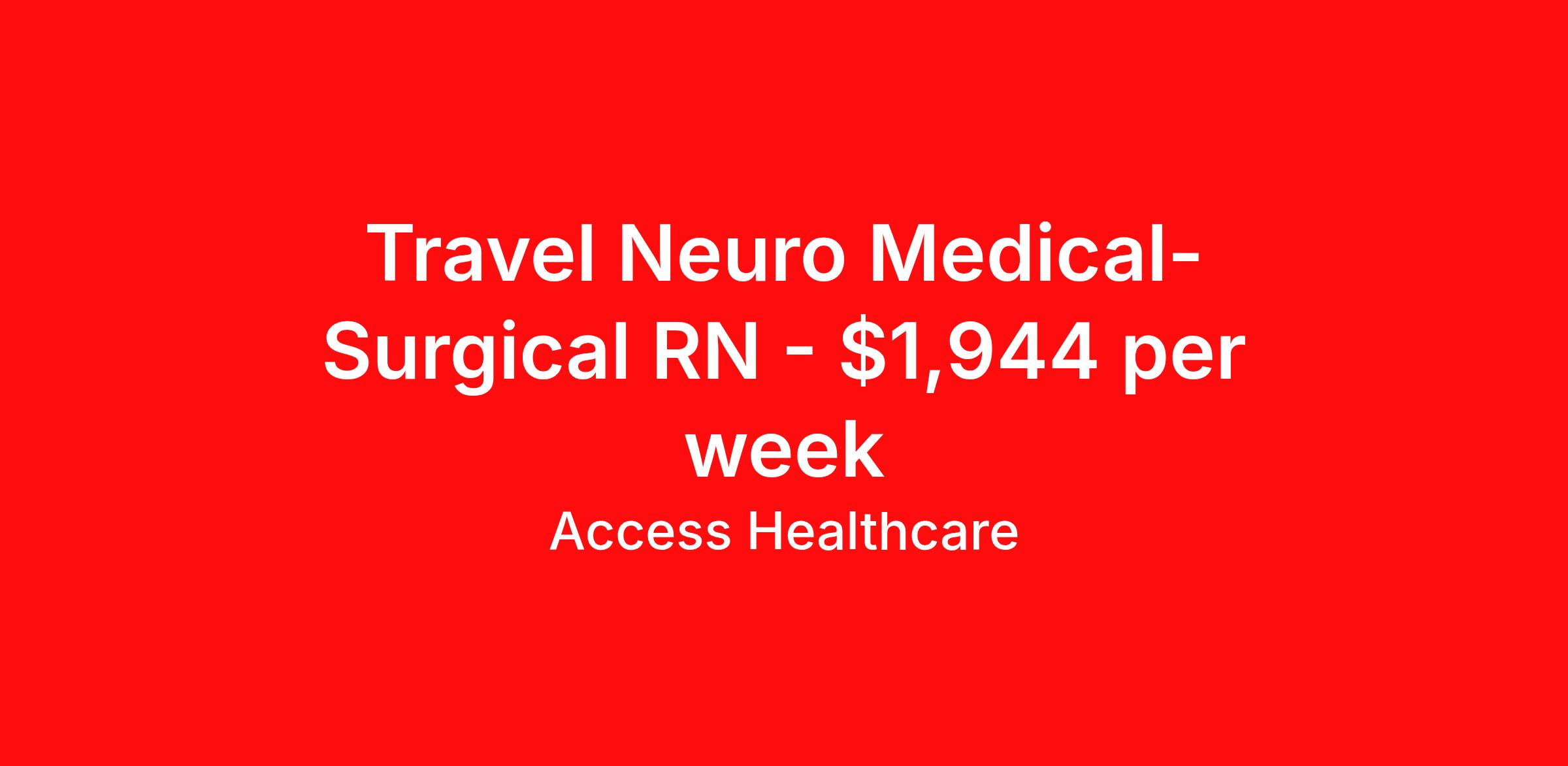 Access Healthcare is seeking a travel nurse RN Med Surg for a travel nursing job in Festus, Missouri. Job Description & Requirements Specialty: Med Surg Discipline: RN Start Date: 03/23/2026 Duration: 13 weeks 36 hours per week Shift: 12 hours, nights Employment Type: Travel Access Healthcare Job ID 75967714. Pay package is based on 12 hour shifts and 36 hours per week (subject to confirmation) with tax-free stipend amount to be determined. About Access Healthcare Access Healthcare aims to provide superior service to our nursing family by providing around the clock support, competitive pay packages and an unmatched benefits package! Unlike other agencies, we offer a true family feel and work with you to find the placement that is right for you. We offer one of the top leading pay packages in the industry and we are ready to get you the money you deserve! Access Healthcare was founded by two travel nurses, Danielle and Diego, who had a dream and a shared vision of creating an agency which all nurses would want to work with. Our passion has led us to where we are today as one of the top 10 agencies in our home state of New Jersey, with access to contracts in all 50 states! We encourage you to join our team and we cannot wait to get to know you!