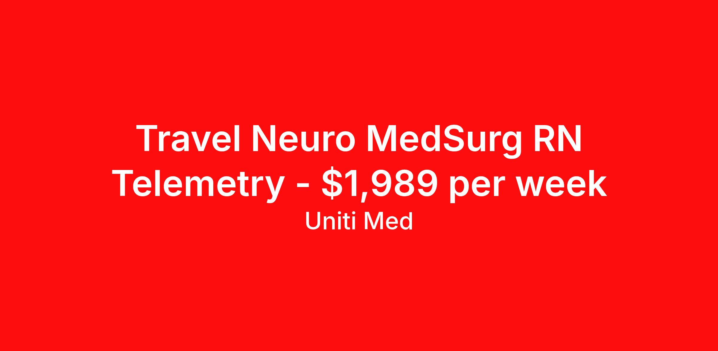Travel Neuro MedSurg RN Telemetry - $1,989 per week